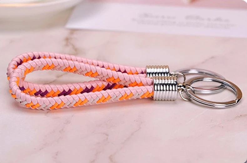 100 шт./лот, новинка, ручная работа, кожаный плетеный Канат, брелок, сумка, подвеска, брелок, держатель, автомобильный брелок, красочный кожаный брелок для ключей