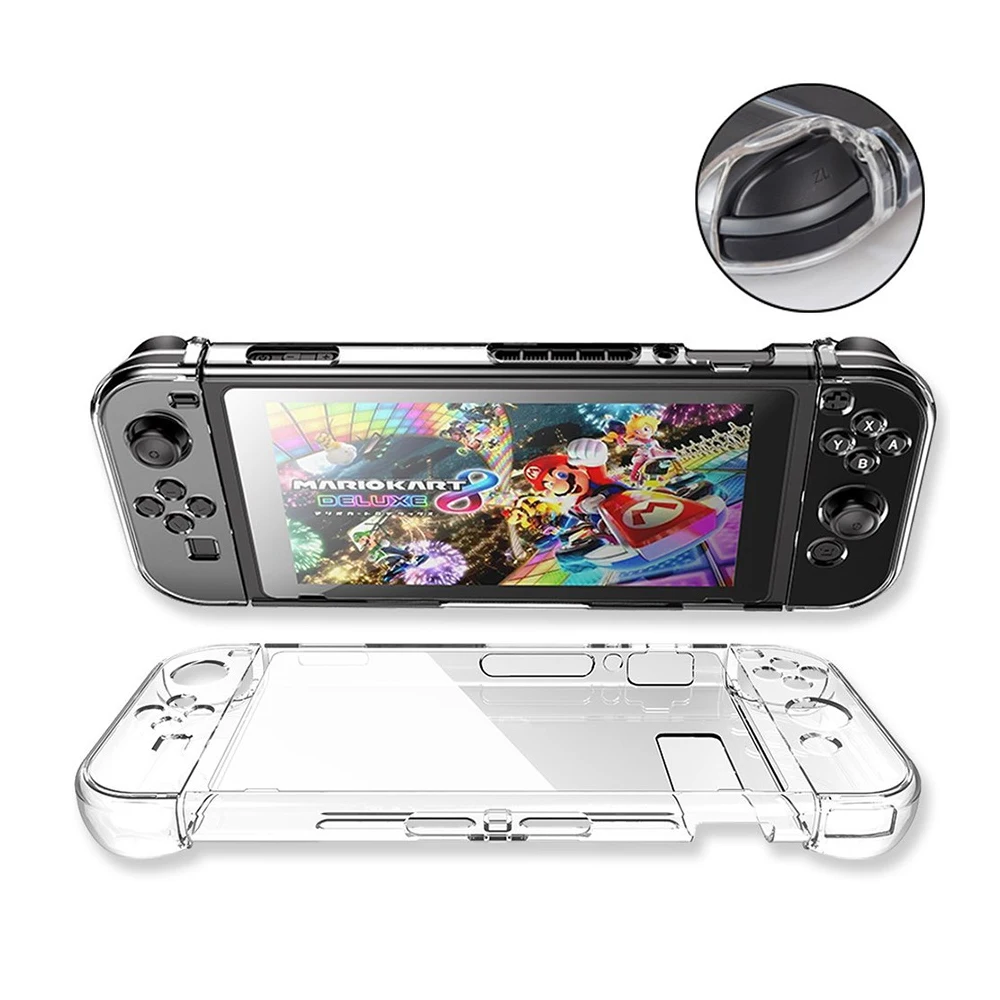 Кристальная Защитная Прозрачный чехол для ПК для nintendo Zend Switch NS NX, чехол, жесткая прозрачная задняя крышка, оболочка для kingd, аксессуары Описание продукта: 1. Идеально совместим с переключателем. Прозрачный, простой дизайн повышает его естественную красоту. 2. Точные вырезы для легкого доступа ко всем портам/кнопкам. 3. Тонкий чехол, который не добавит лишнего размера или веса. 4. Гладкая поверхность позволяет чувствовать себя комфортно. 5. Нижняя конструкция идеально подходит для держателя подставки. 6. Устойчивый к царапинам жесткий корпус из поликарбоната обеспечивает максимальную защиту. 7. Усиленные углы защищают от ударов, падений, пыли и отпечатков пальцев. 8. Прочный и прочный. 9. Чехол разделен на 5 частей, вам не нужно отсоединять чехол, чтобы снять Joy-Con. Посылка список: 1 шт *Кристалл протектор прозрачный чехол для ПК для nintendo Zend Switch