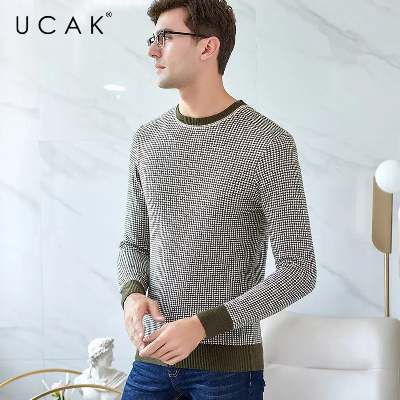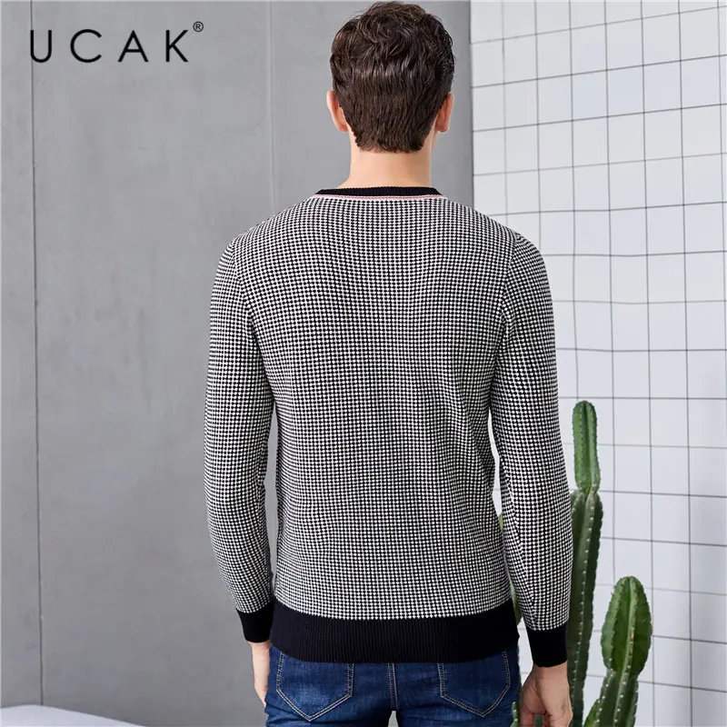 UCAK Brand Merino Wool Sweater Men Streetwear Young Fashion Sweaters O-Neck Pull Homme Autumn Winter Cashmere Pullover Men U3044