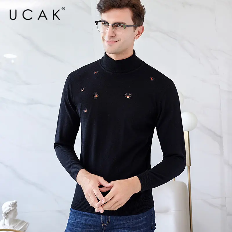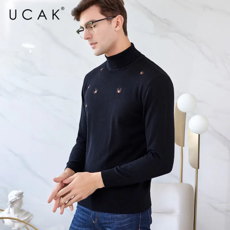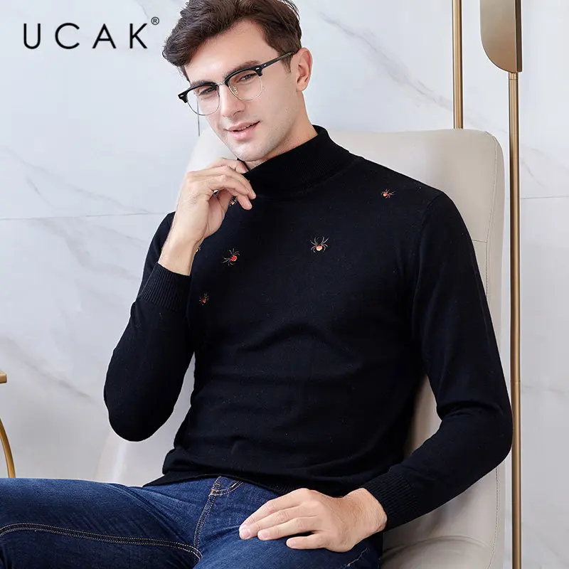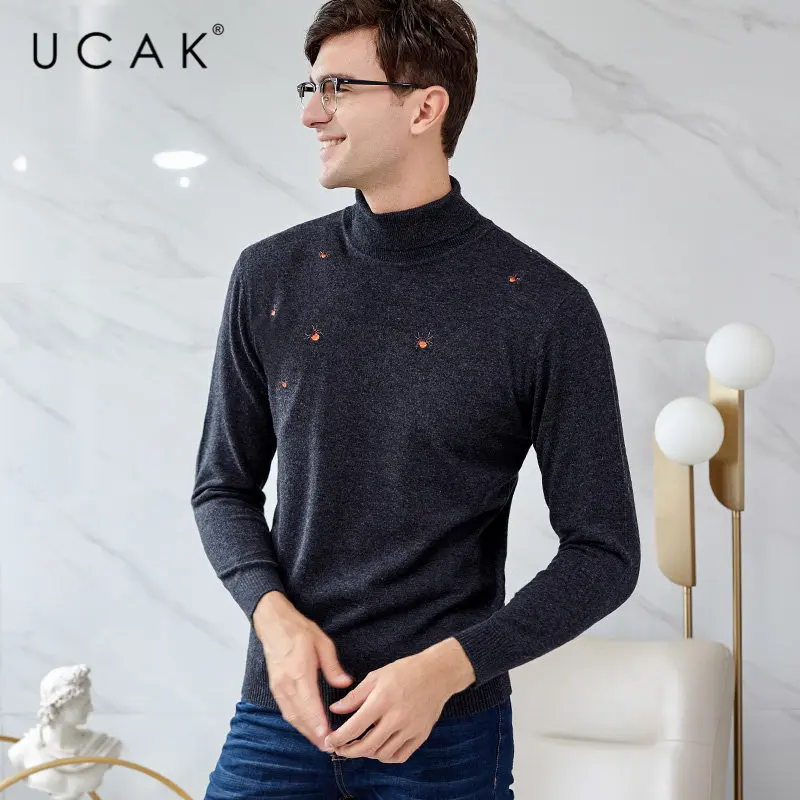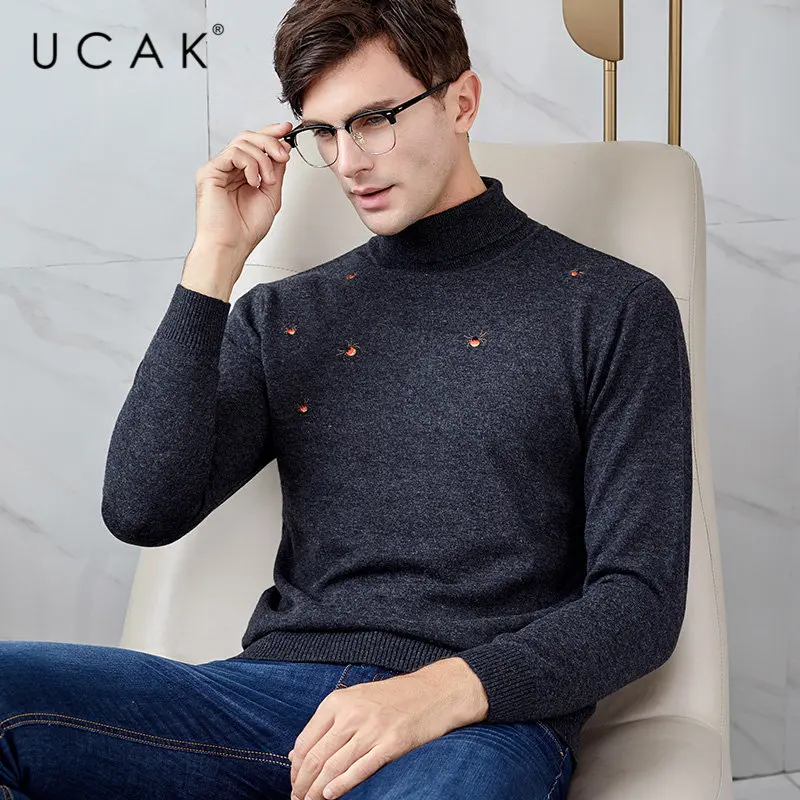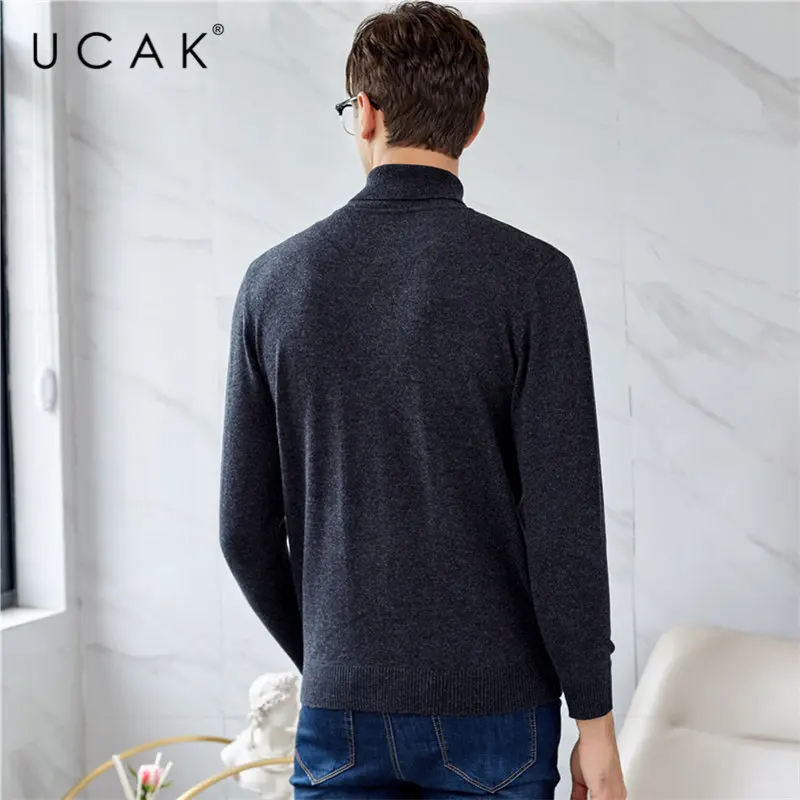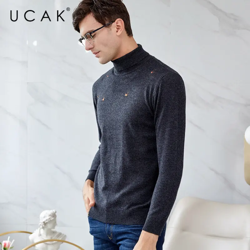 UCAK Brand Merino Wool Sweater Men Autumn Winter Warm Turtleneck Cashmere Pullover Men Streetwear Fashion Young Pull Homme U3049