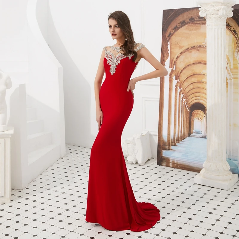 Женское атласное вечернее платье с рукавами-крылышками и бусинами, красное вечернее платье Русалочки, 2019