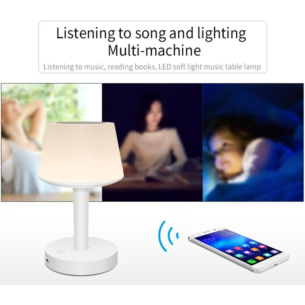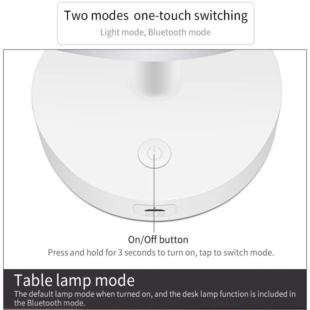 Muilt-функция:Как настольная лампа, так и bluetooth-динамик. Режим по умолчанию-настольная лампа при включении, нажмите кнопку, чтобы переключить режим bluetooth, вы можете читать книги и воспроизводить музыку с помощью этой умная Светодиодная лампа.