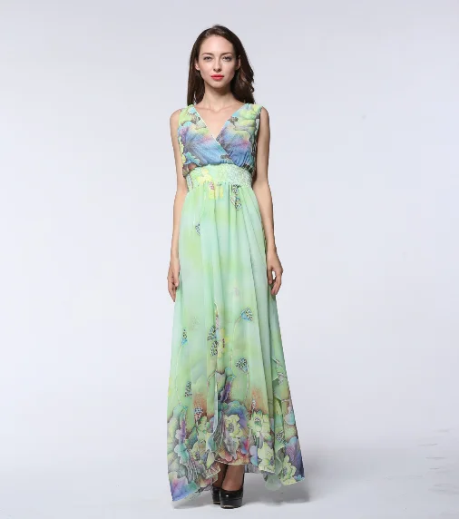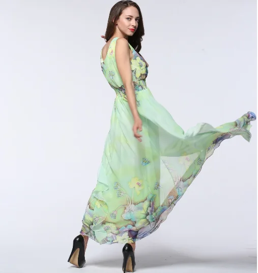2019 повседневное элегантное женское летнее шифоновое платье сексуальное платье с v-образным вырезом без рукавов F1er большой размер 7XL Robe femme ete Vestido longo