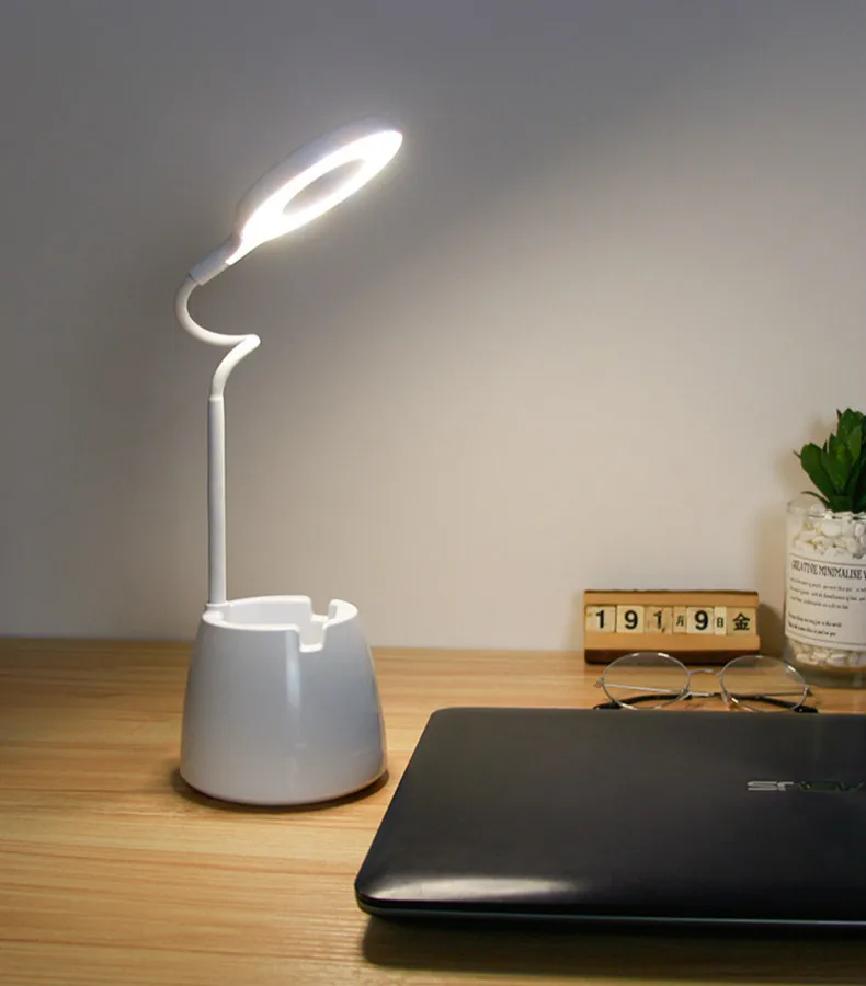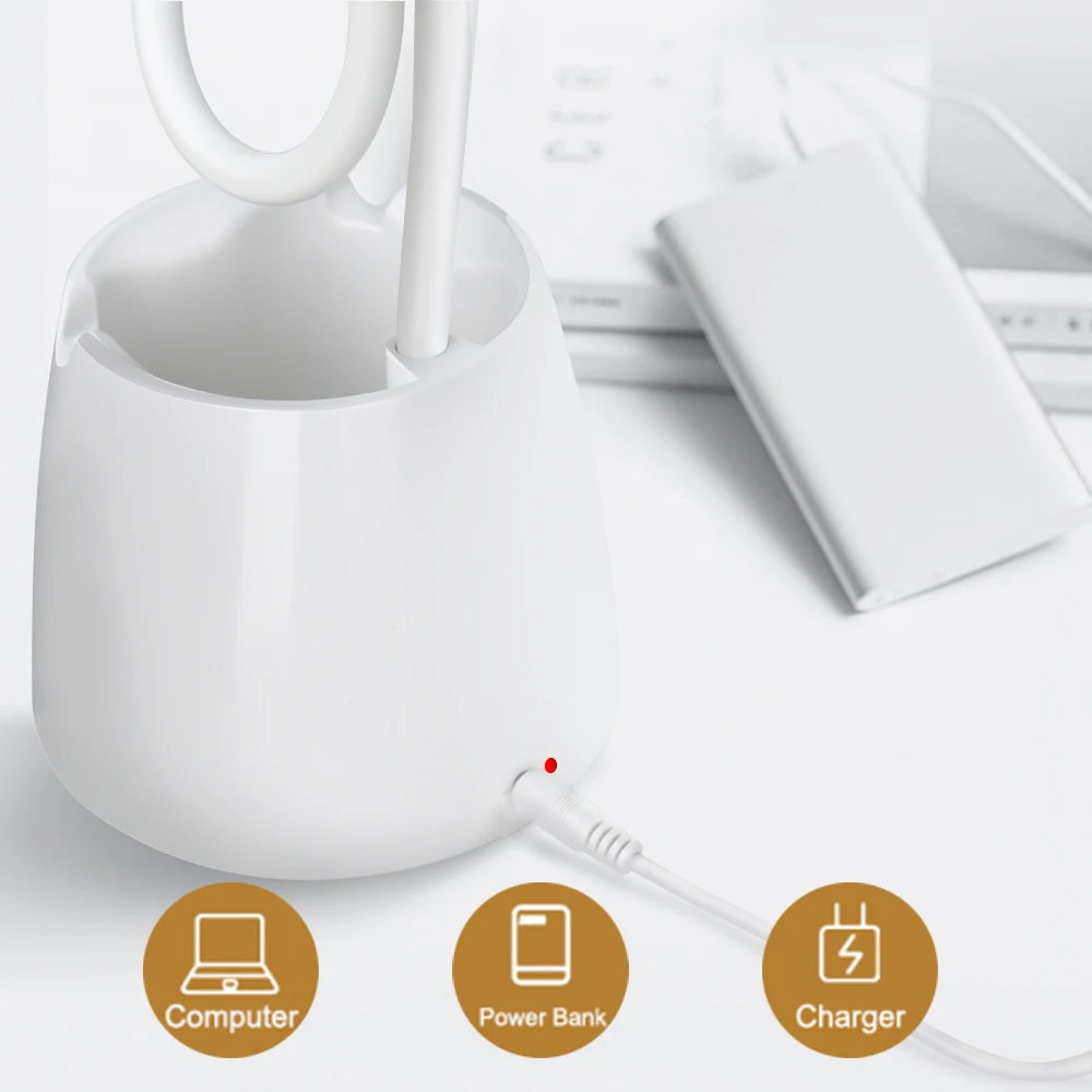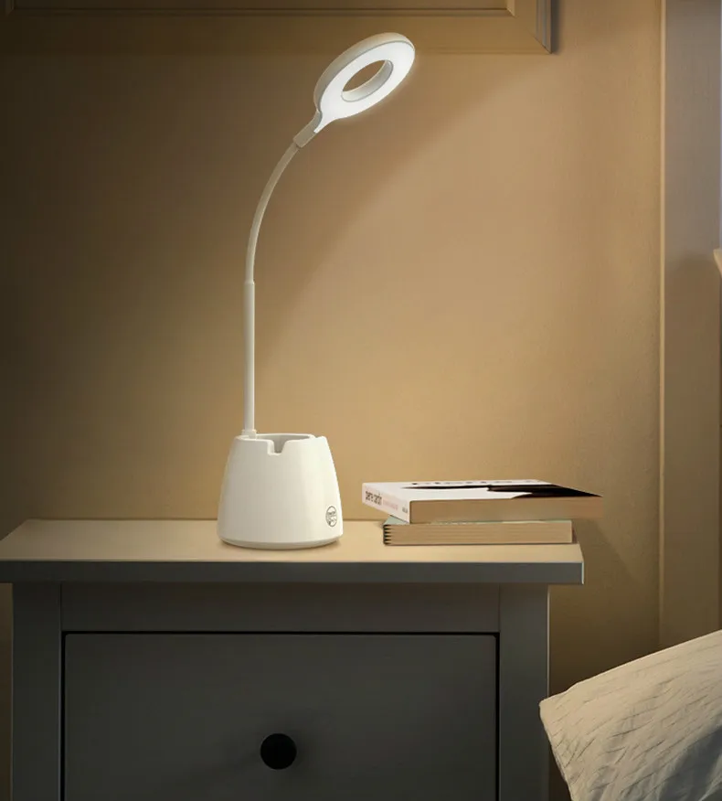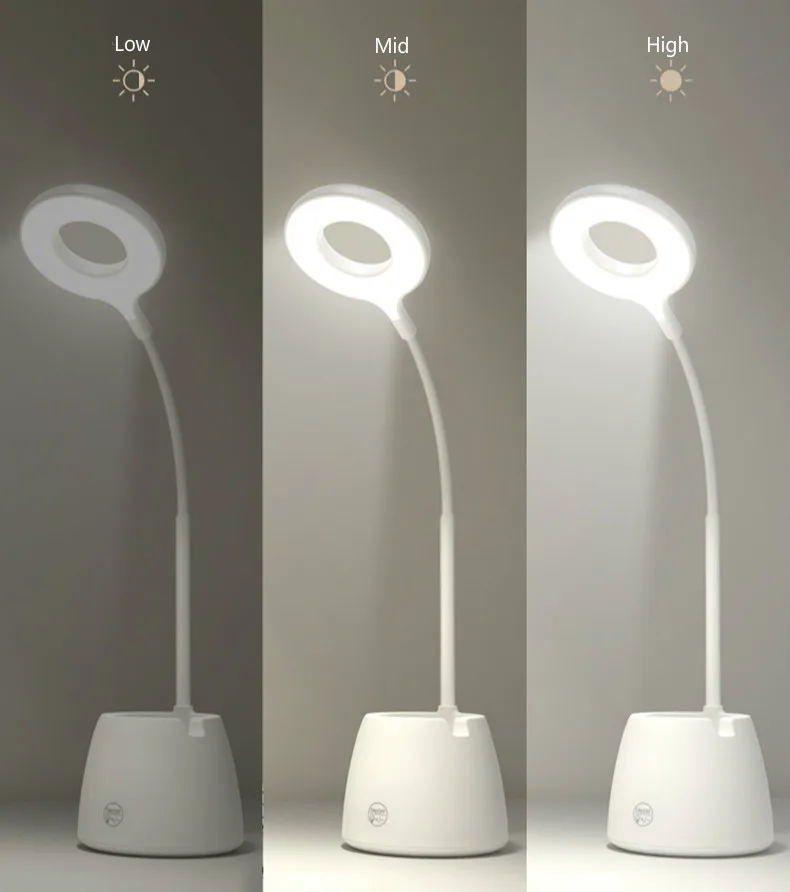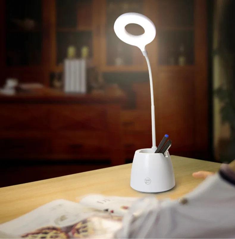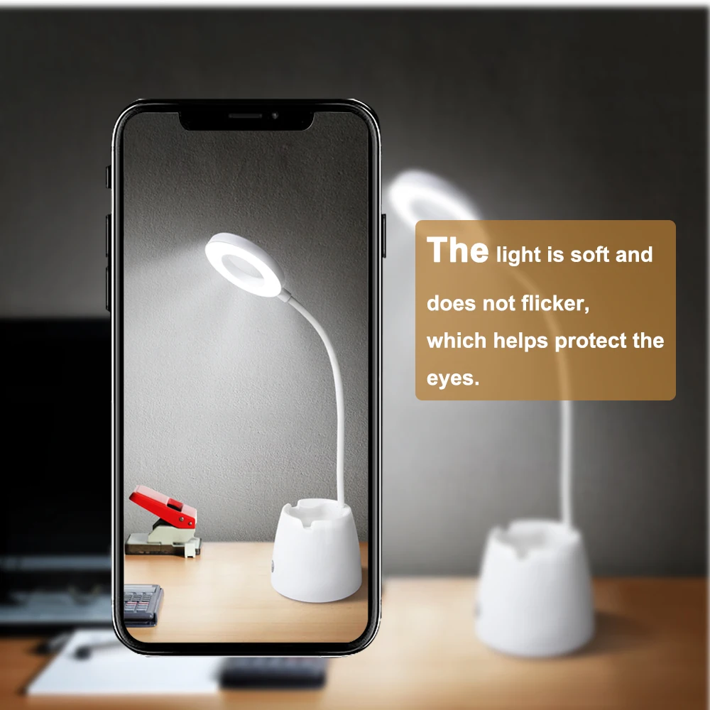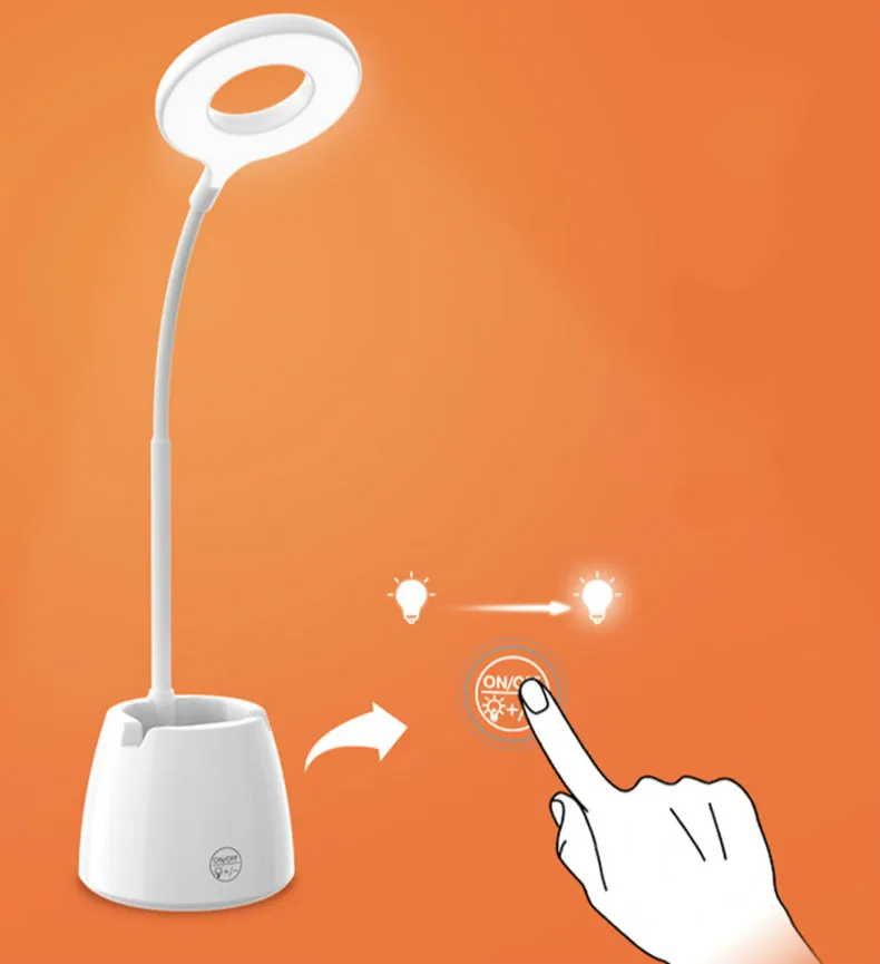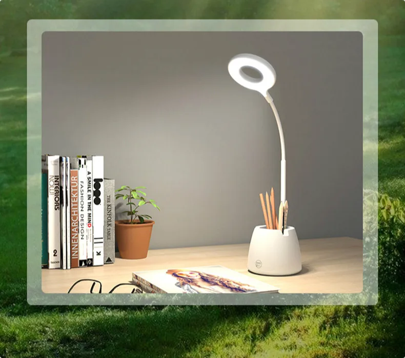 1. Дизайн светового направляющего кольца, не стробоскопический и без бликов, и это хороший компаньон для чтения и обучения. 2. Сенсорное трехскоростное решение затемнения, и вы можете переключить соответствующий свет по желанию. 3. Свет оснащен литиевой батареей большой емкости 2000 мАч для длительного использования. 4. Инновационный держатель ручки и держатель мобильного телефона дизайн для экономии пространства. 5. Экологически чистый силиконовый металлический шланг может свободно согнуться, чтобы отрегулировать соответствующий угол освещения. Особенности: 1. Дизайн светового направляющего кольца, не стробоскопический и без бликов, и это хороший компаньон для чтения и обучения. 2. Трехскоростное решение для затемнения сенсорного типа, и вы можете переключить соответствующий свет по желанию. 3. Свет оснащен литиевой батареей большой емкости 2000 мАч для длительного использования. 4. Инновационный держатель ручки и держатель мобильного телефона дизайн для экономии пространства. 5. Экологически чистый силиконовый металлический шланг может свободно согнуться, чтобы отрегулировать соответствующий угол освещения. Инструкции по использованию: 1. Для первого использования Используйте usb-кабель для полной зарядки; 2. Включение/выключение: нажмите на кнопку, чтобы включить или выключить; 3. Регулировка яркости: Коснитесь боты около трех секунд, отпустите для подтверждения яркости тока. Комплектация: Настольная лампа USB кабель
