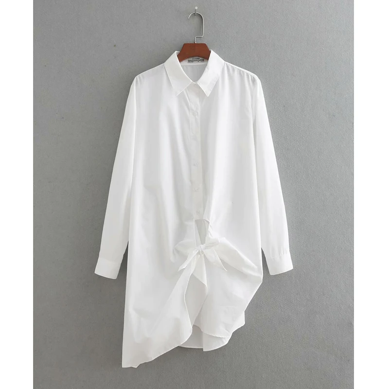 Повседневная Женская белая Осенняя блузка платье Женский галстук-бабочка с длинным рукавом офисное платье OL свободное офисное женское платье на весну