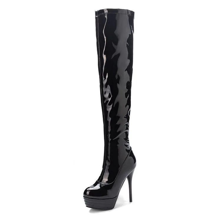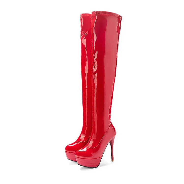 Olomm/женские Сапоги выше колена; Пикантные сапоги на шпильках; Красивые красивые вечерние туфли с круглым носком; Цвет красный, черный, белый; Женская обувь; Американские размеры 3-14Пожалуйста, используйте нашу таблицу размеров при выборе размера.