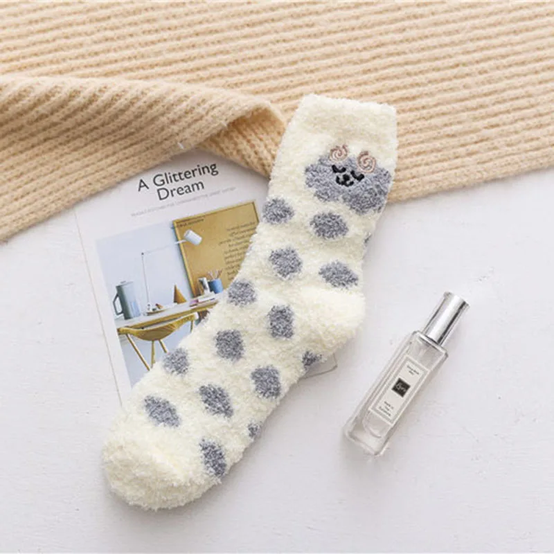 Простые милые махровые носки с вышитыми овечьими ушками; Зимние теплые носки с животными; Meias; Забавные носки для сна; Kawaii Skarpetki Sox