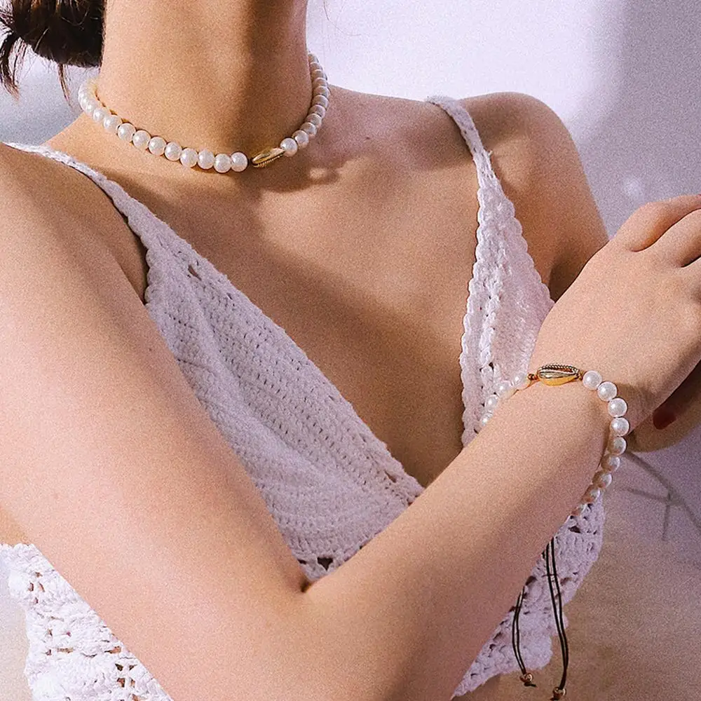 1. Название; Новый Модный жемчужный бисер в форме ракушки, колье и браслет, ювелирный набор 2. Размер: как на картинке 3. Обратите внимание: это может использоваться в повседневной жизни