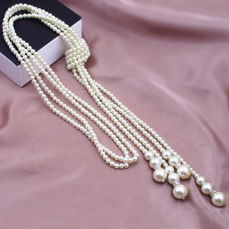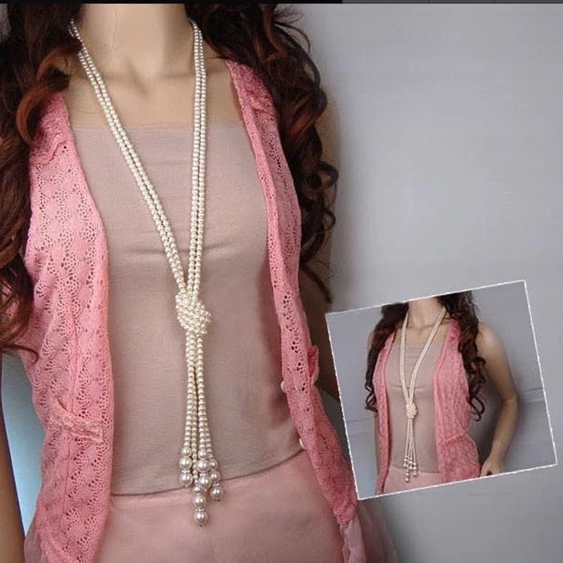 Модные женские ювелирные изделия 65 см Искусственный жемчуг ожерелье Роскошные женские искусственные жемчужные бусины ожерелье для вечерние свадебные Винтажные Ювелирные Изделия