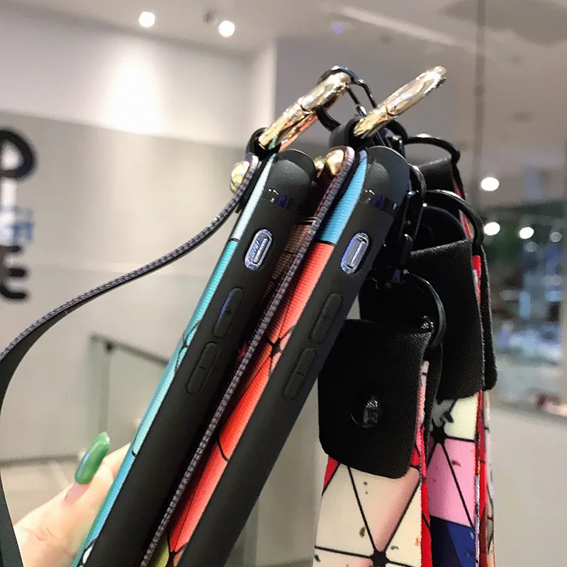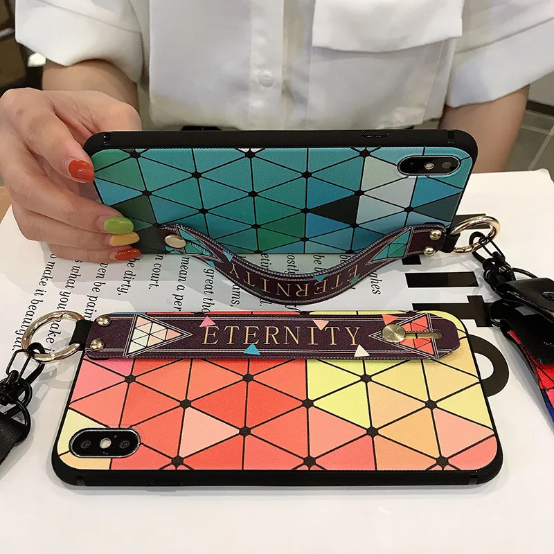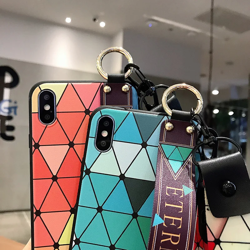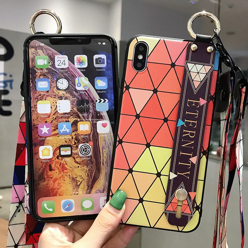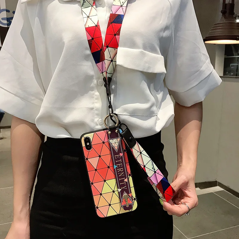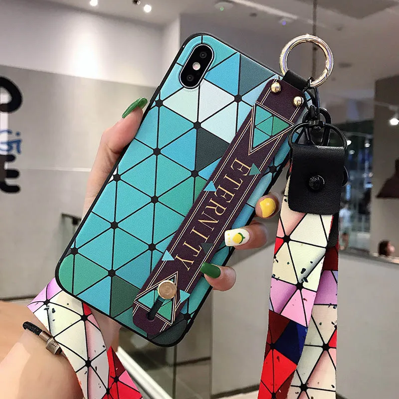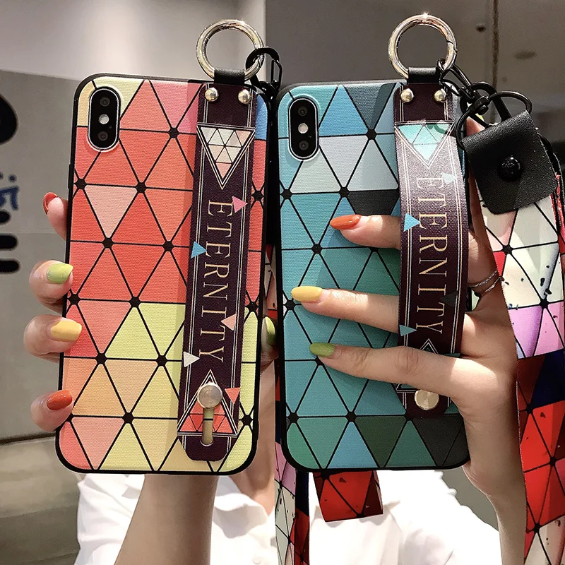 Plaid Pattern Wrist Strap Phone Case For Samsung Galaxy S10E S8 S9 S10 Plus Note 8 9 Soft TPU Cover With Lanyard Neck Strap