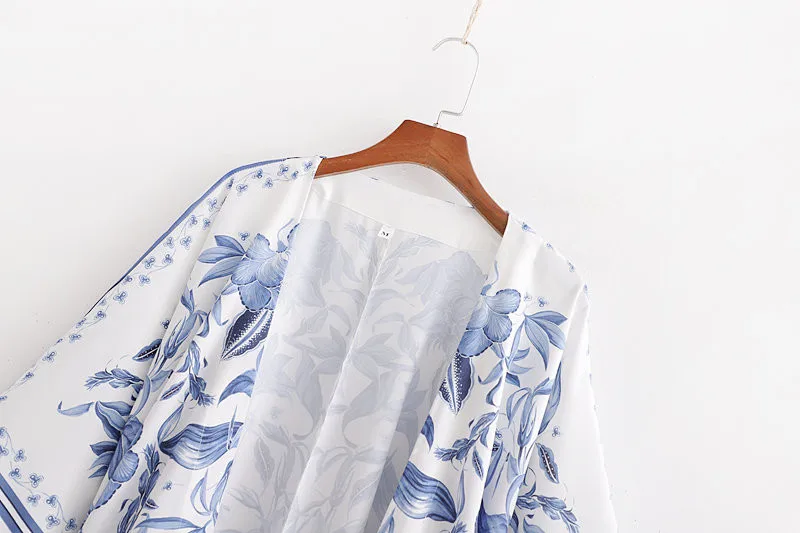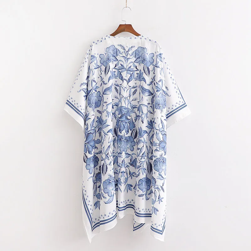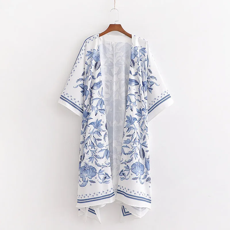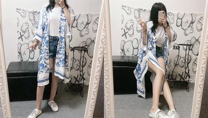 Женское кимоно с цветочным принтом, длинное платье в японском стиле, Пляжная верхняя одежда для отпуска, лето-осень 2019