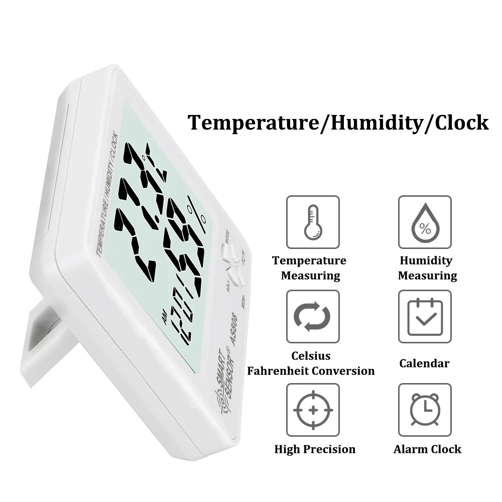 SMART SENSOR Temperature Humidity Meter is an instrument used for measuring the moisture content in the atmosphere. Humidity measurement instruments usually rely on measurements of some other quantity such as temperature, pressure, mass or a mechanical or electrical change in a substance as moisture is absorbed. By calibration and calculation, these measured quantities can lead to a measurement of humidity. Modern electronic devices use changes in electrical capacitance or resistance to measure humidity differences.