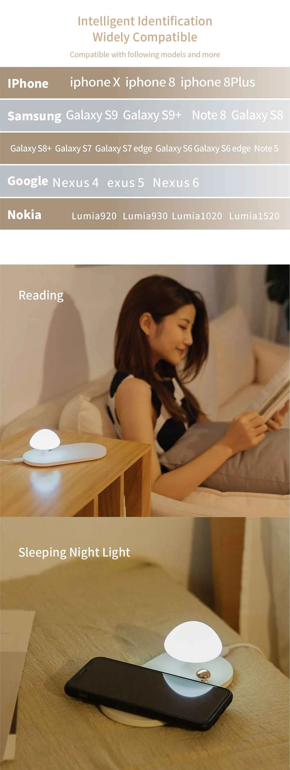 1x3 жизни гриб Ночной светильник Беспроводное зарядное устройство