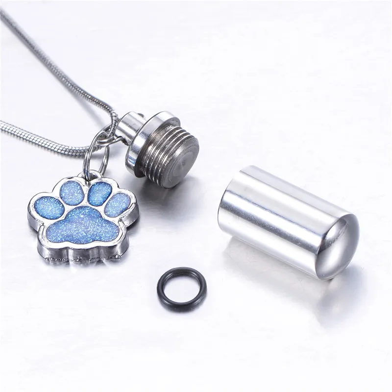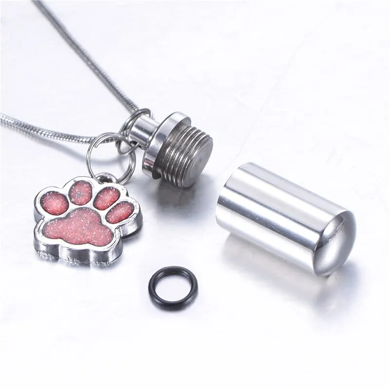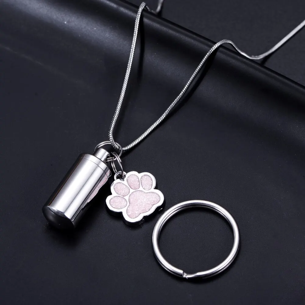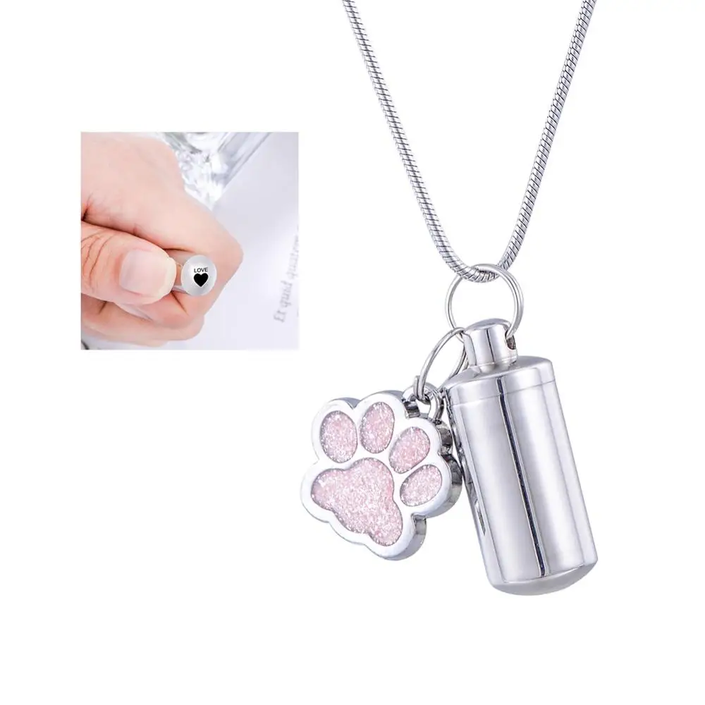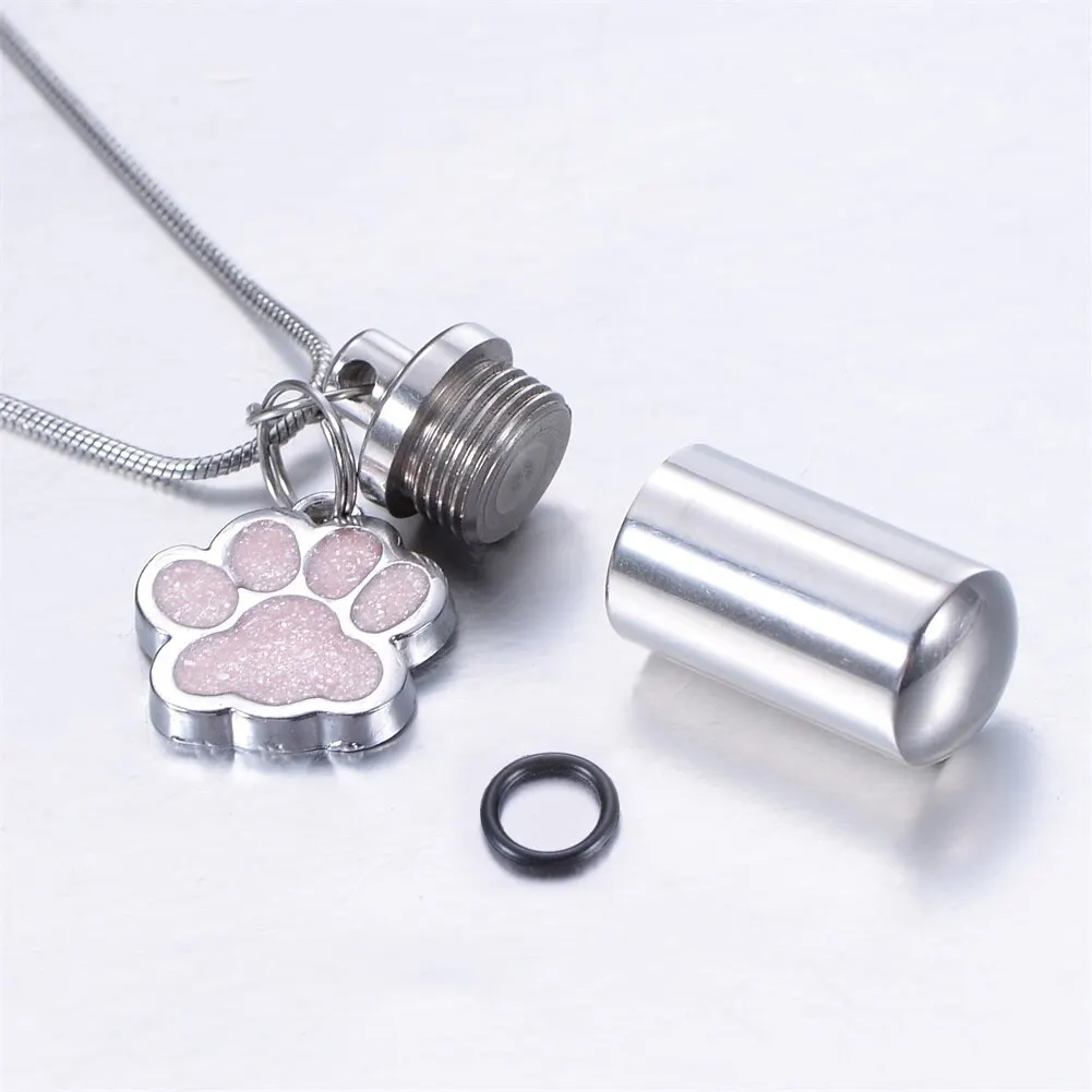 Белая K Нержавеющая сталь маленькая цилиндрическая бутылка + розовая собачья лапа открывающаяся средняя Емкость Водонепроницаемый унисекс памятный брелок ожерелье двойное использование кулон