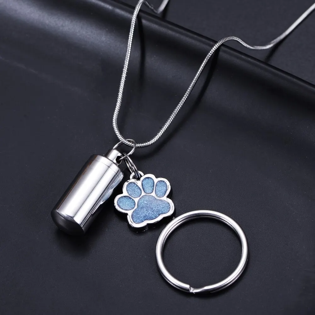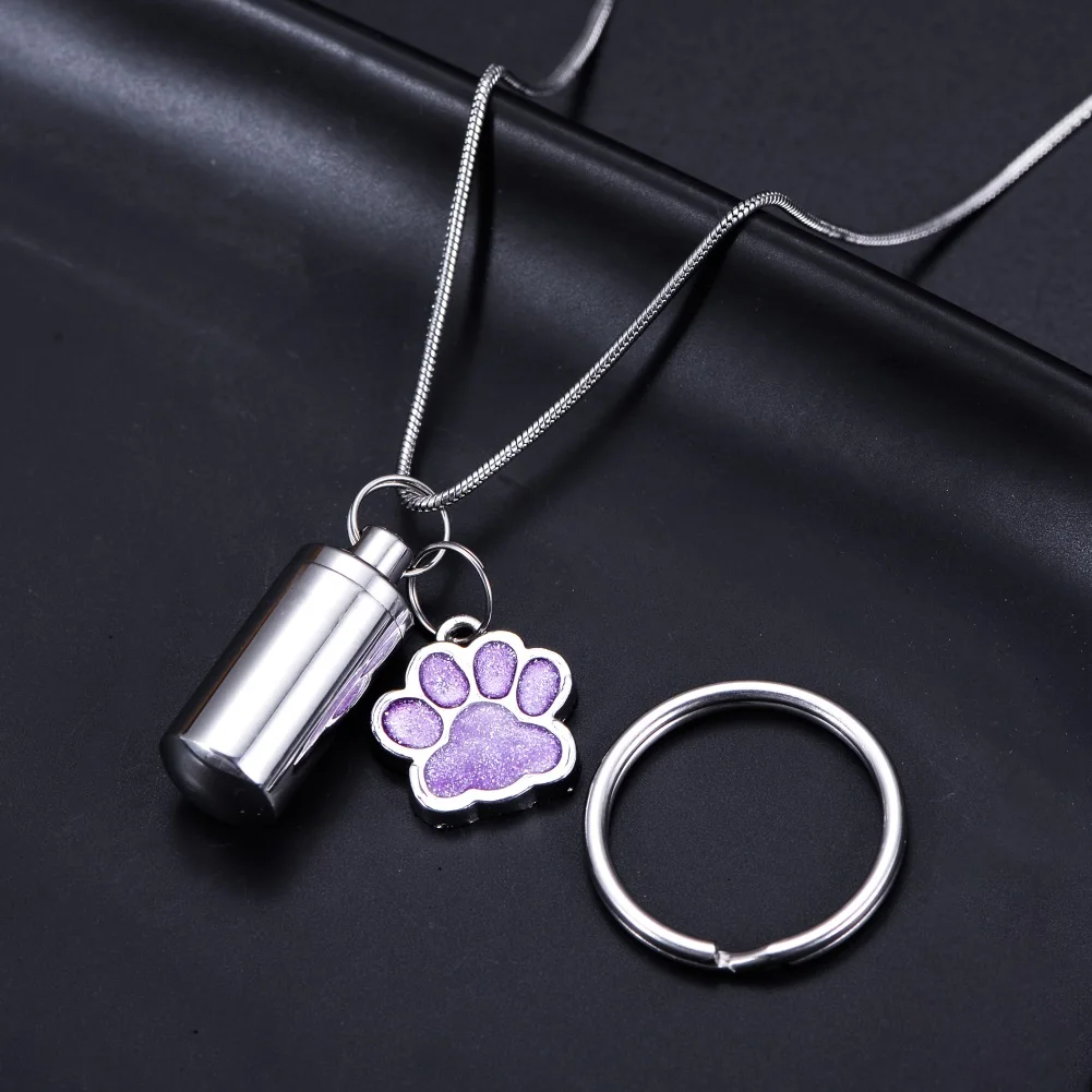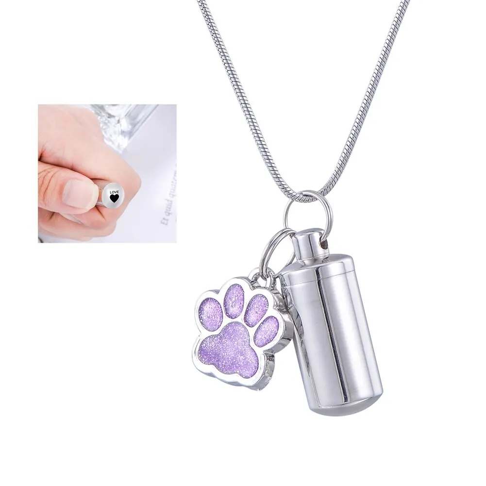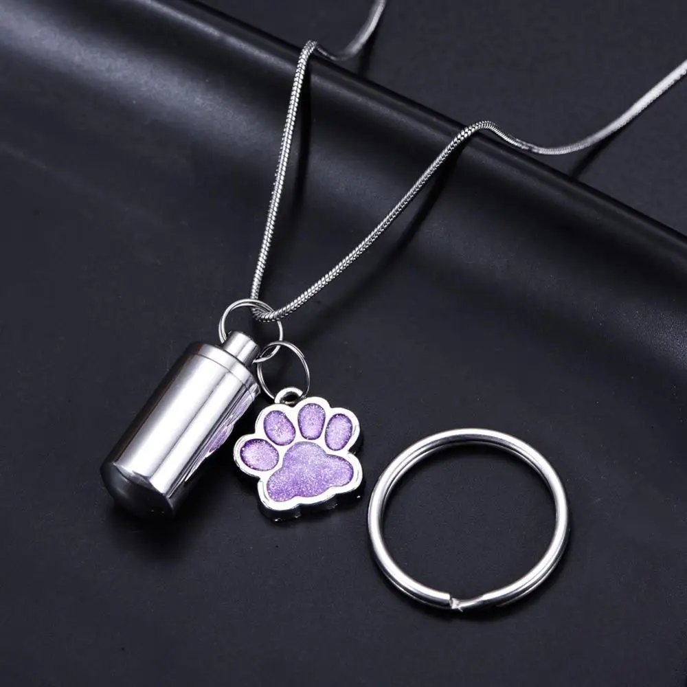 Белая K Нержавеющая сталь маленькая цилиндрическая бутылка + розовая собачья лапа открывающаяся средняя Емкость Водонепроницаемый унисекс памятный брелок ожерелье двойное использование кулон