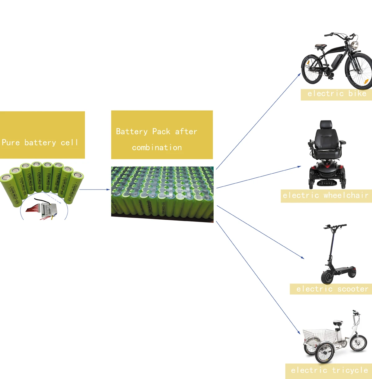 Батареи могут быть использованы для изготовления всех видов батарей для электрического велосипеда, электрического скутера, электрического инвалидного кресла и т. д.