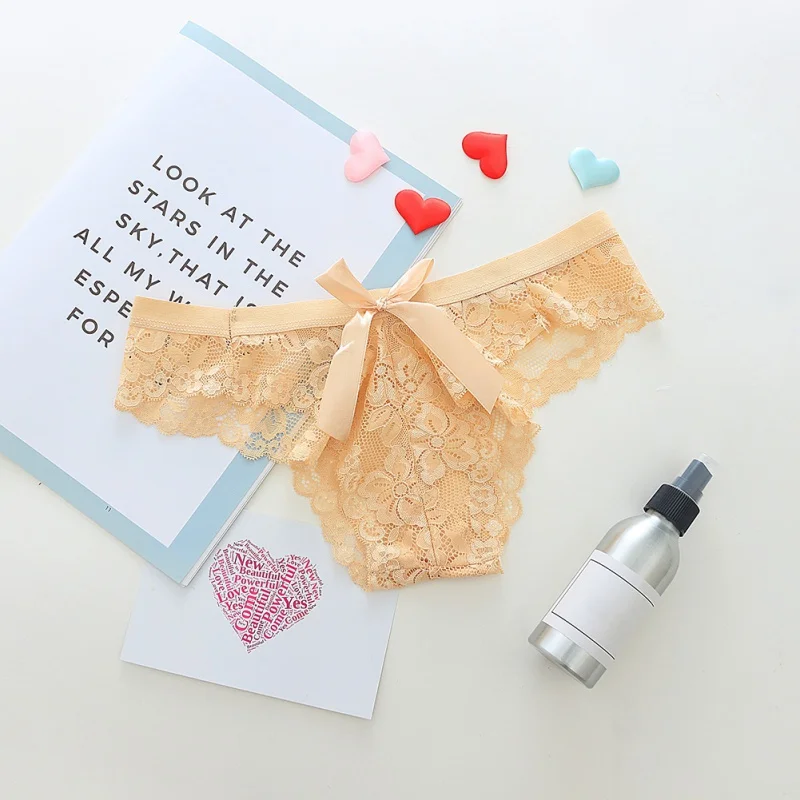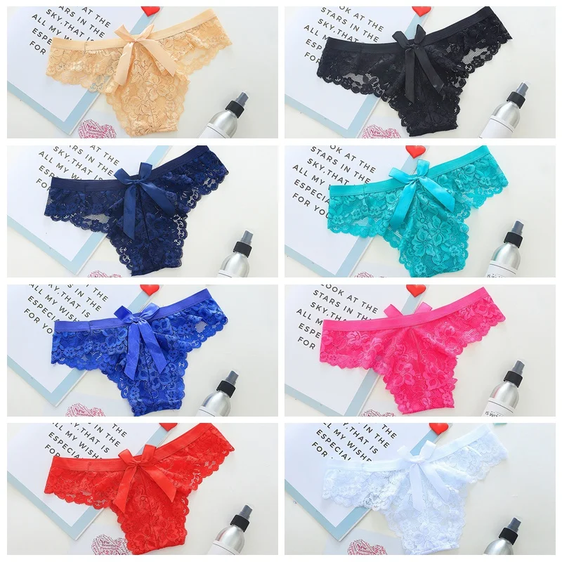 Новые женские сексуальные трусы с низкой талией, однотонные Трусы-стринги с бантом, кружевные перспективные трусы