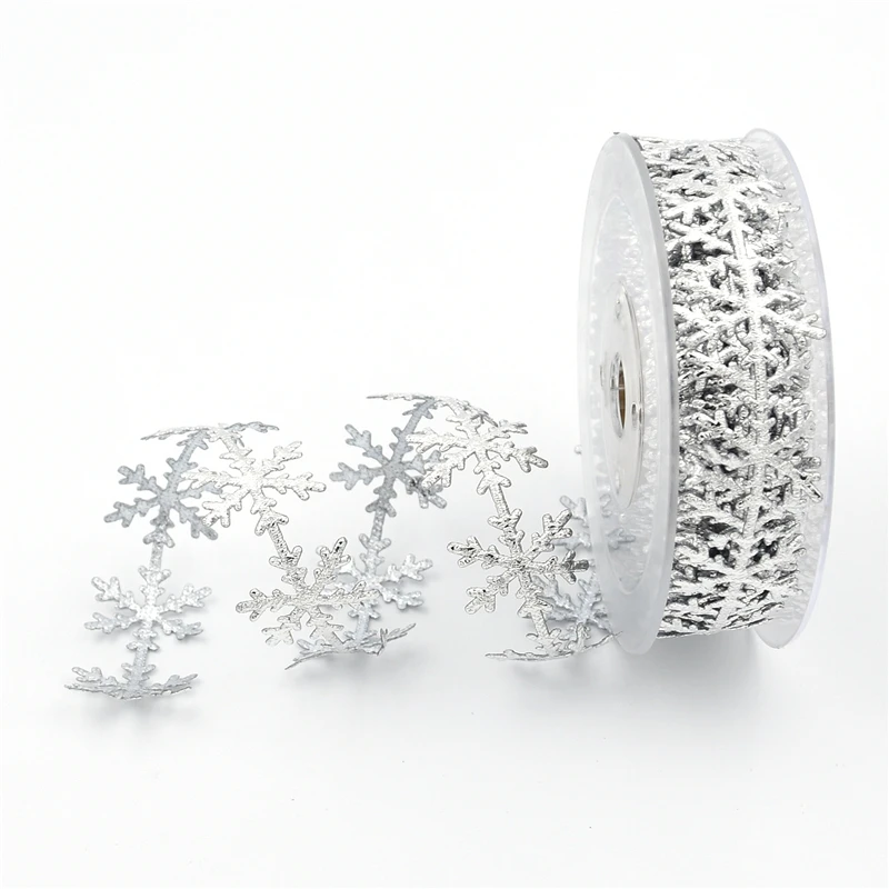 Снежинка лента с тиснением Код. XR0014 Материал: полиэстер Размер: 2,5 см Цвет: золотой, серебряный, белый, серый Комплектация: белый и серый: 5 м/рулон, Золото и серебро: 10 м/рулон Использование: Рождество, фестиваль, цветы, отель, Подарочная коробка упаковки, DIY ручной работы и т. Д.