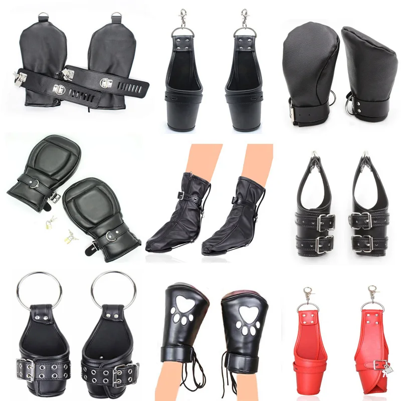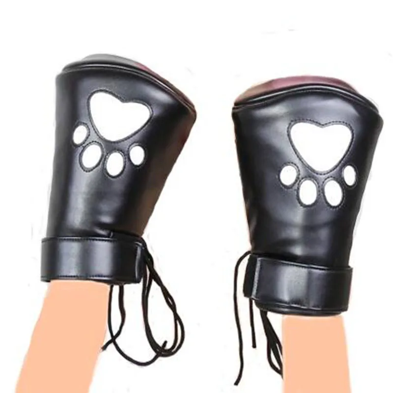 БДСМ Связывание из искусственной кожи с подкладкой Связывание полуперчатки на кулак перчатки, защитные варежки, взрослые аксессуары для косплея, ползет лапы Секс игрушки