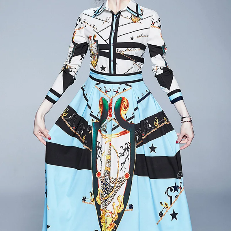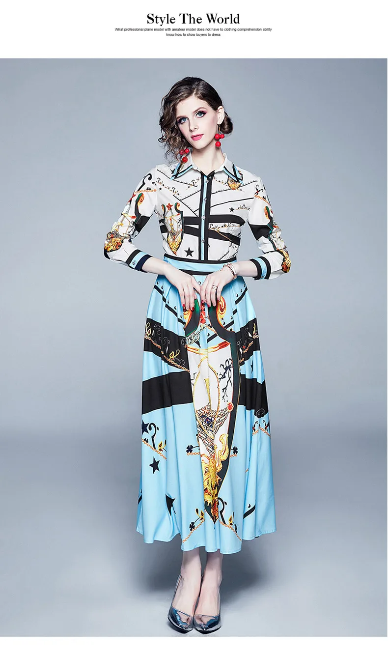 Осеннее женское платье 2019 макси с длинным рукавом Поло рубашка с принтом плюс размер элегантные ретро популярные вечерние офисные повседневные платья для девушек