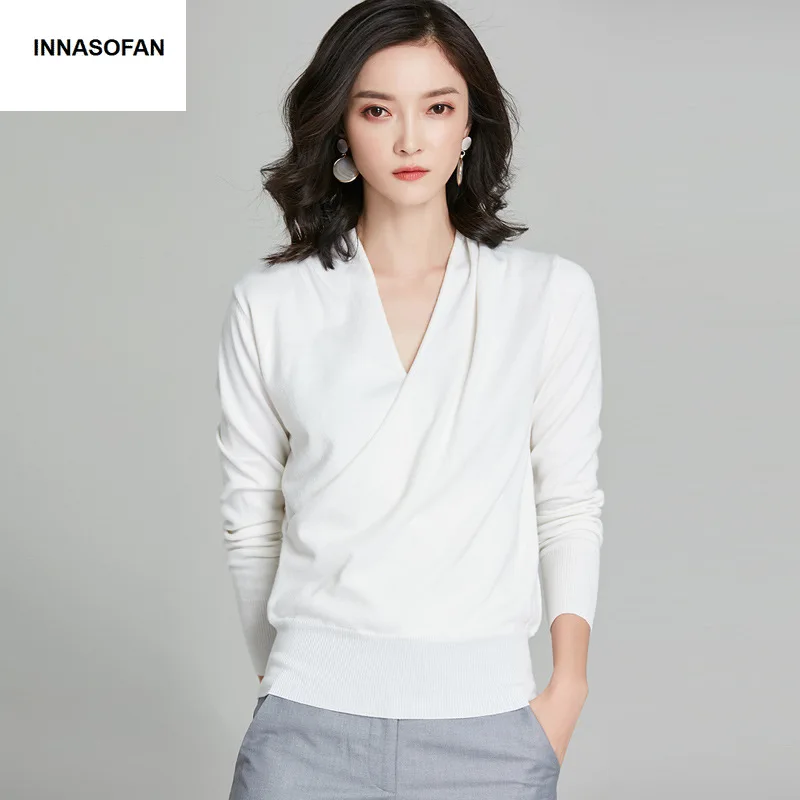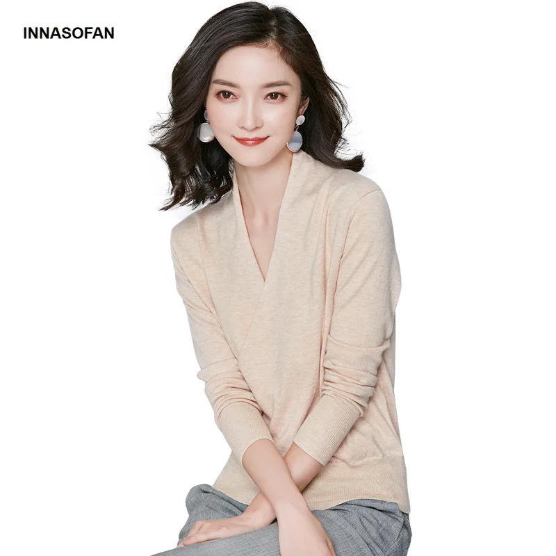 Свитер Женский вязаный с длинным рукавом, с V-образным вырезом