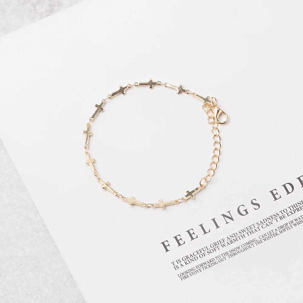 Распятие Иисуса Христа Женщины Мужчины горизонтальные боковые перекрестные браслеты для серебряного золота браслет из нержавеющей стали подружек невесты подарок