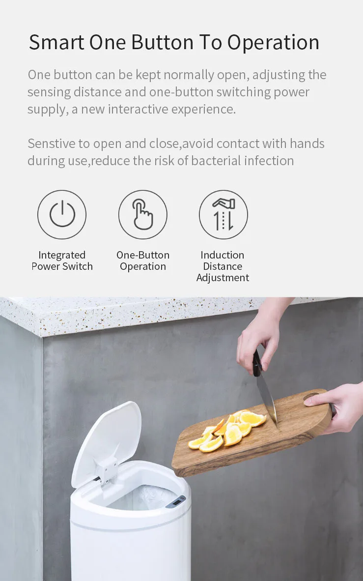 Импульсная технология защиты от помех используется для осуществления интеллектуального управления мусорным баком, и 0,3 секундная крышка быстрого открытия индукции.