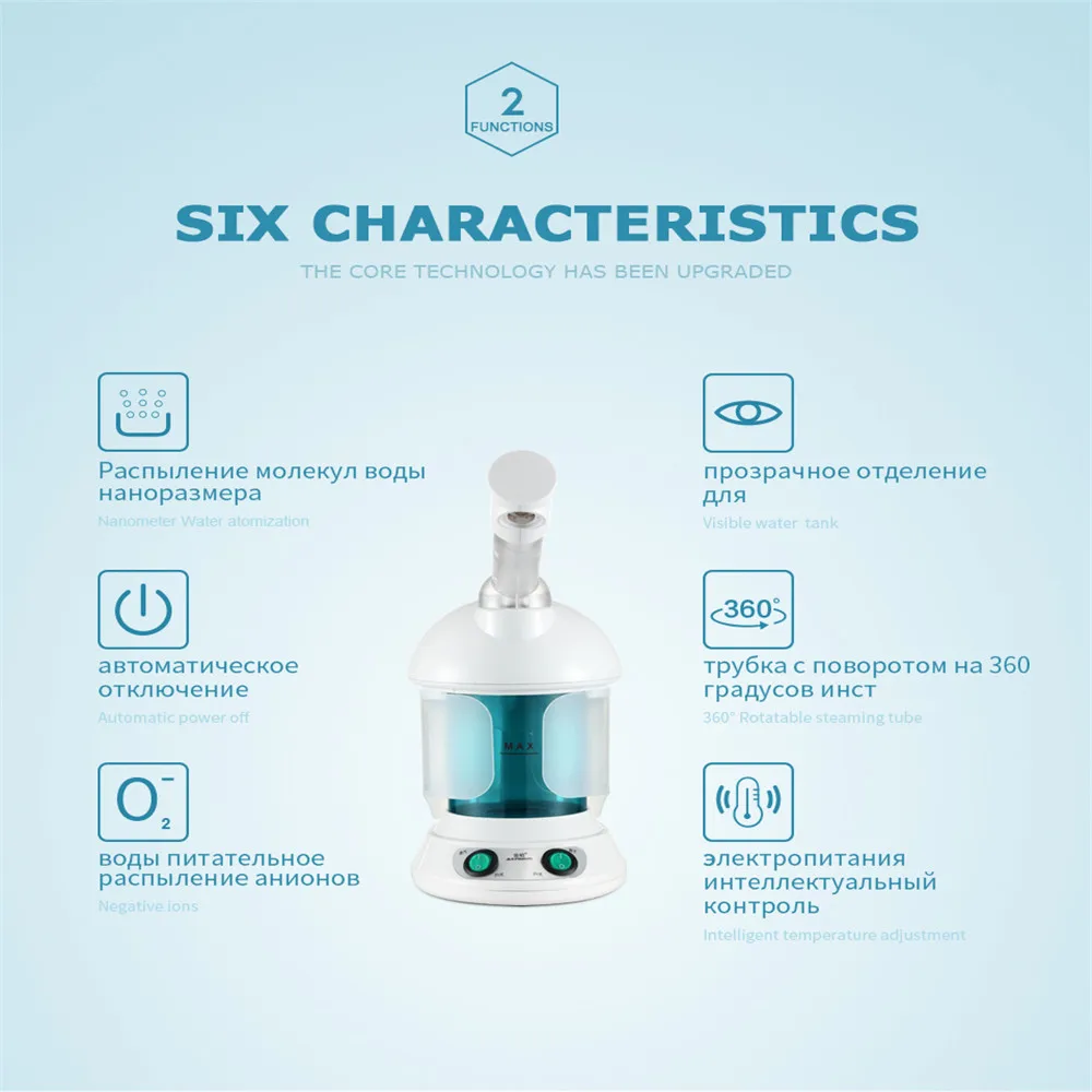Кожа свободно дышит. Туман может быть генерирован в течение короткого времени, и это займет всего 3 минуты, чтобы пар проник глубоко в вашу кожу и очистит ее. Он может служить не меньше