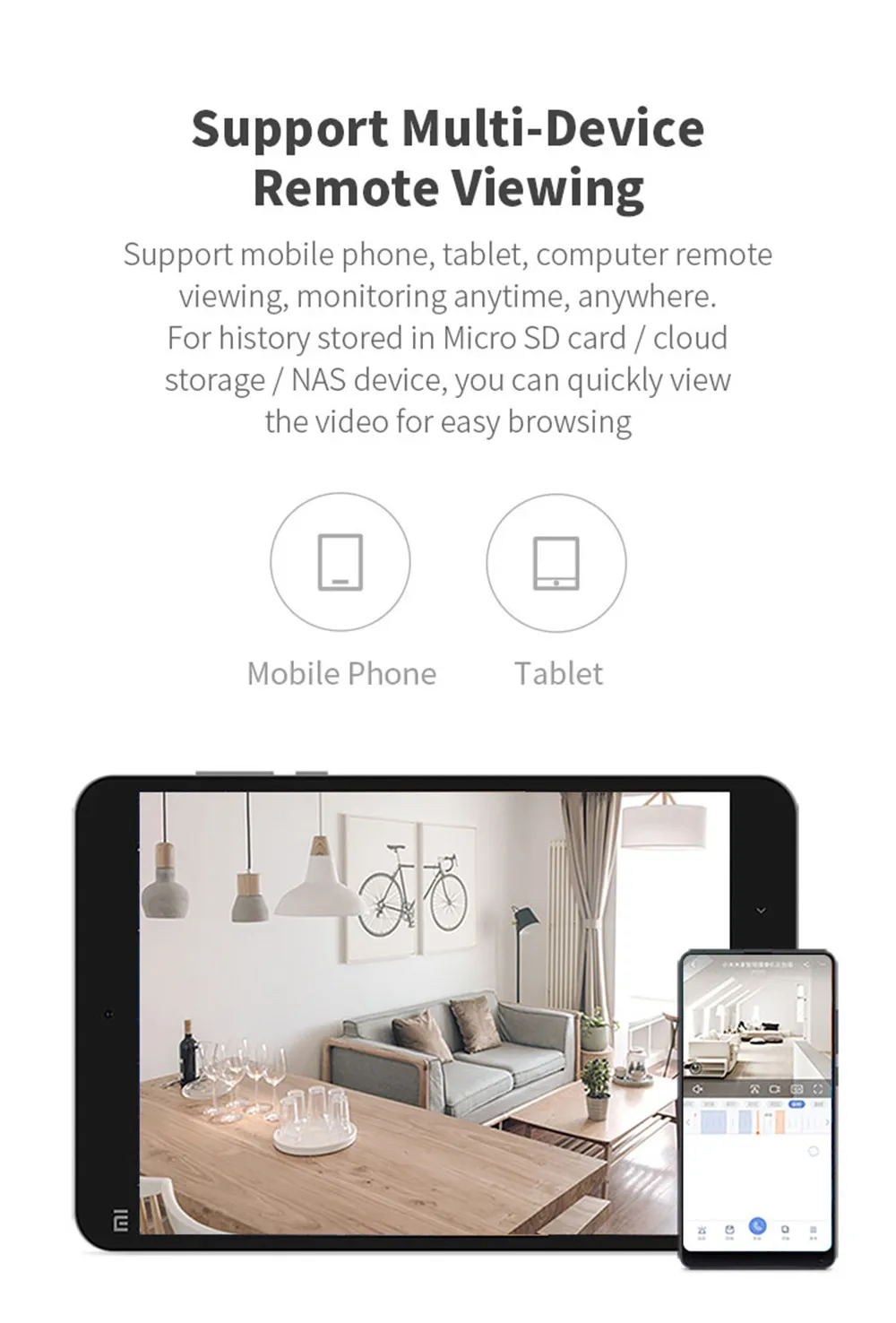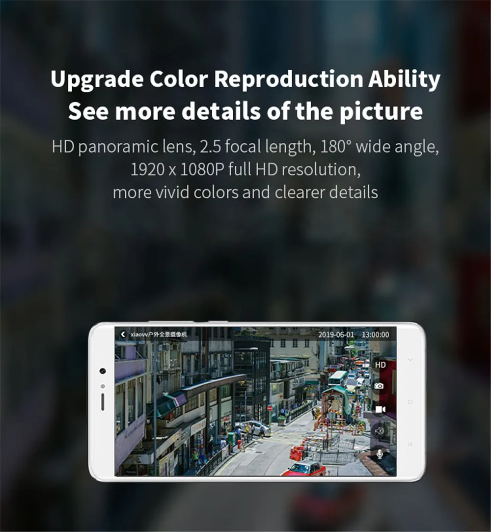 Please note before purchase This product is Xiaomi's ecological chain product.produced by a third party cooperation company, So It's without 'MI' logo. maybe will show cooperation company brand on the product.hope you understand. Large Wide-Angle HD Lens Full range of high-definition images, wide range, clear picture. 180° Wide Wide Angle Lens The monitoring area is 180° wide and wide, which makes the field of view wider and the picture clearer and smoother. HD 1080P Real Quality Equipped with a 200W pixel HD lens, it can display 1080P clear image quality, closer to the real scene. Night Vision Long Distance, Infrared HD F2.0 large aperture lens with 4 high-efficiency infrared lamps, maximum viewing distance of 15 meters, can be seen farther and clearer. Two-Way Voice, Communication Is More Convenient Two-way language intercom, support video real-time intercom, chat with family anytime, anywhere. M-otion Detection + Humanoid Detection In The Cloud You can view the dynamics anytime and anywhere through terminal devices such as mobile phones/tablets: the upgraded high-end humanoid detection function effectively filters out invalid alarms with an accuracy rate of up to 98%. Specification : Model XVV-1120S-B1 Material ABS Color White Product Parameters Function Night Version Two Way Talking Motion D-etection Quad Screen Lens 1080P Waterproof Level IP66 Level Storage Function Max.128G APP Control V380 Lens Size Specification 2.5MM Focal Length F2.3 Aperture Focus Section Wide Angle 180° Night Vision Light 4 Infrared Lamps Connection Method WI-FI 802.11B/GN 2.4GHZ Onvif Support Power Input DC-12V / 1A Working Temperature -10℃-50℃ Package Includes : 1 x Smart Camera 1 x Power Cable 1 x Install Base 1 x Screw Package 1 x User Manual