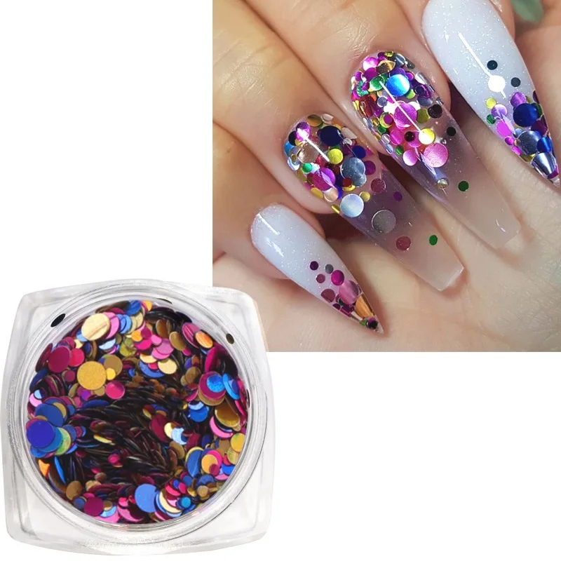 1 Набор, смешанные размеры, ультратонкие Блестки для дизайна ногтей, блестящие хлопья, массивный Блестящий сверкающие круглые блестящие аксессуары для маникюра