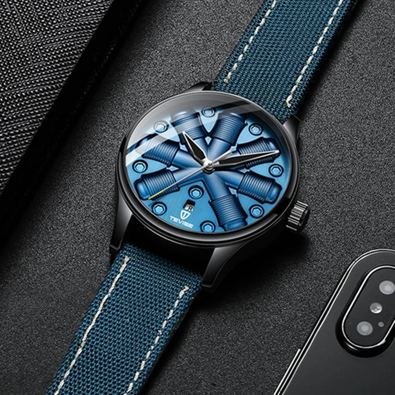 Бренд: TEVISE Категории часов: мужские, мужские Циферблат Форма циферблата: круглая Тип механизма: механический, автоматический Дисплей Тип: указатель Группа Материал ремешка: нержавеющая сталь Цвет ремешка: черный, синий, серебристый Размеры и вес Длина ремешка: 21 см Диаметр циферблата: 4,1 см Толщина корпуса: 1,5 см Ширина ремешка: 2 см Посылка 1X часы