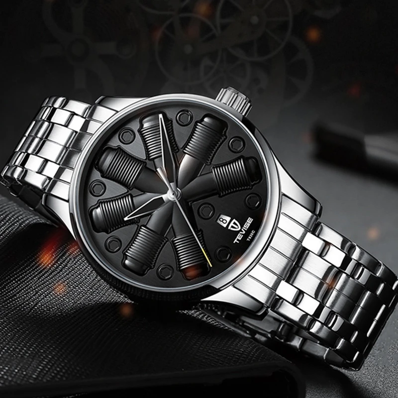 TEVISE модные креативные механические часы для мужчин Роскошные спортивные автоматические часы из нержавеющей стали водонепроницаемые мужские часы авто часы с датой