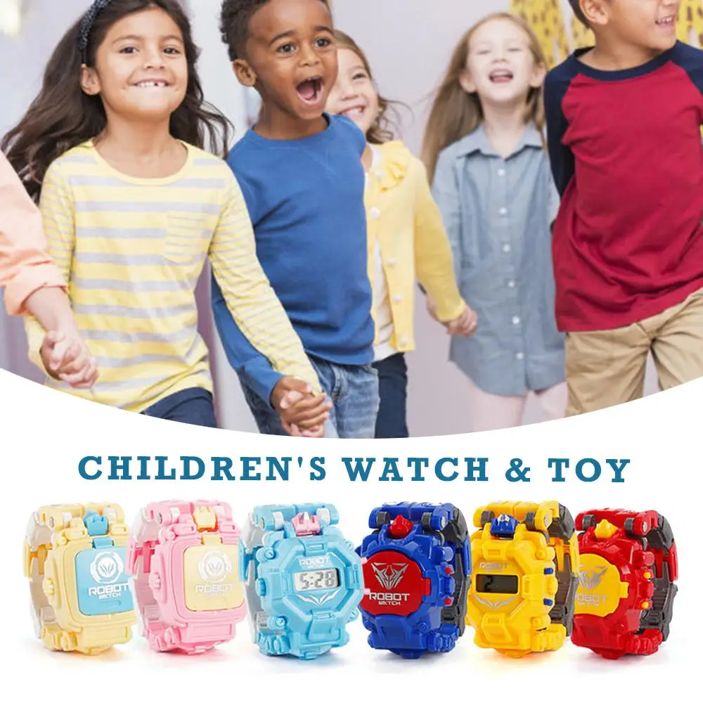 Новые детские креативные деформируемые часы, игрушки-трансформеры, электронный дисплей, робот-часы, развивающие игрушки для детей, подарки