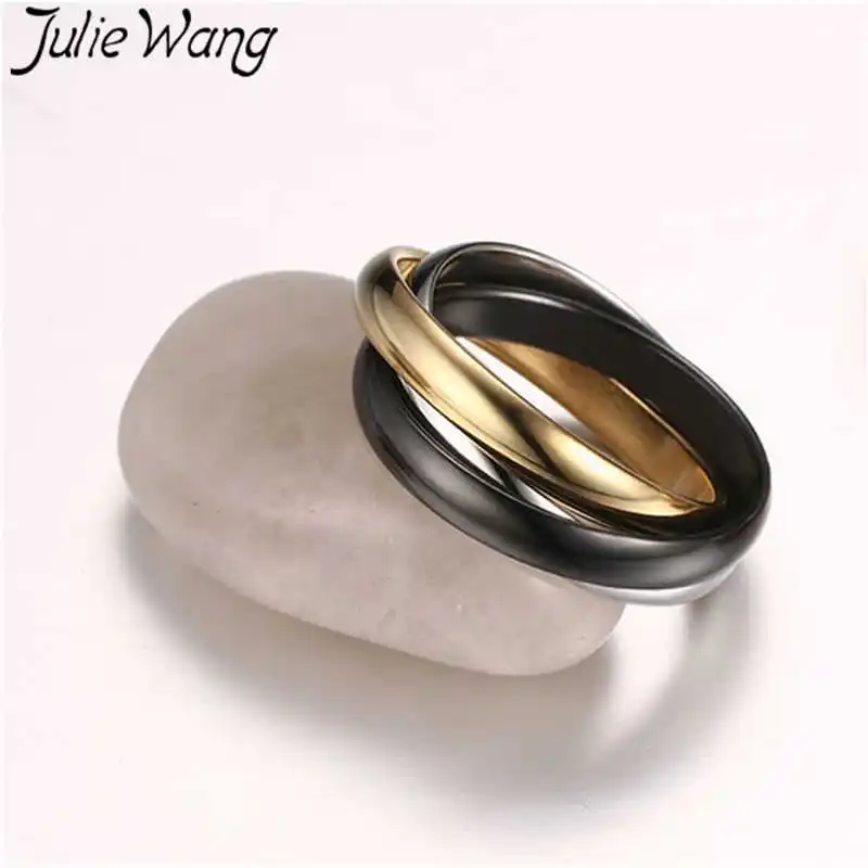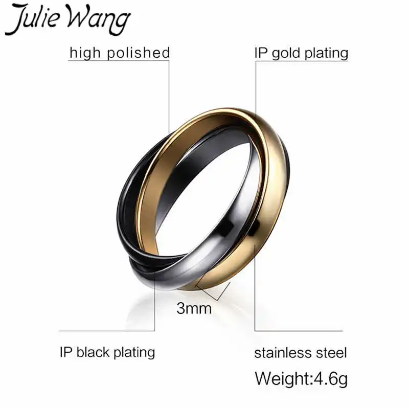 Характеристики изделия: 3 круга кольцо из нержавеющей стали для женщин и мужчин триколор кольцо обручальное кольцо панк Модные женские мужские ювелирные изделия