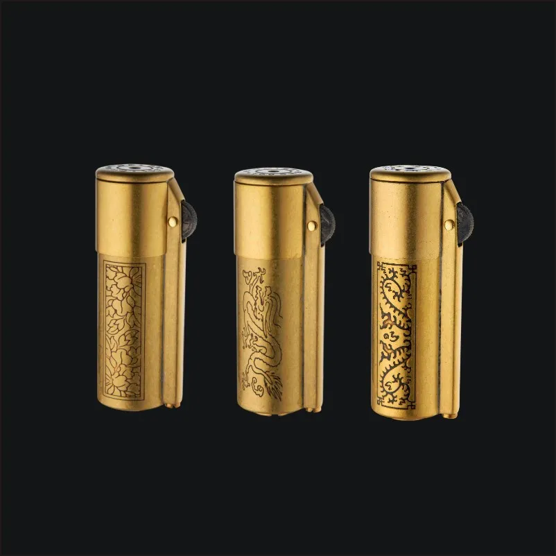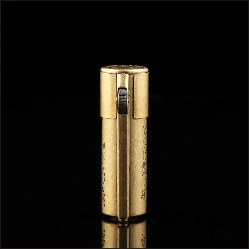 Нежная керосиновая зажигалка с резьбой по дереву, керосиновая зажигалка, ретро-Зажигалка из чистой меди и латуни, бензиновые ветрозащитные неплоские металлические гаджеты