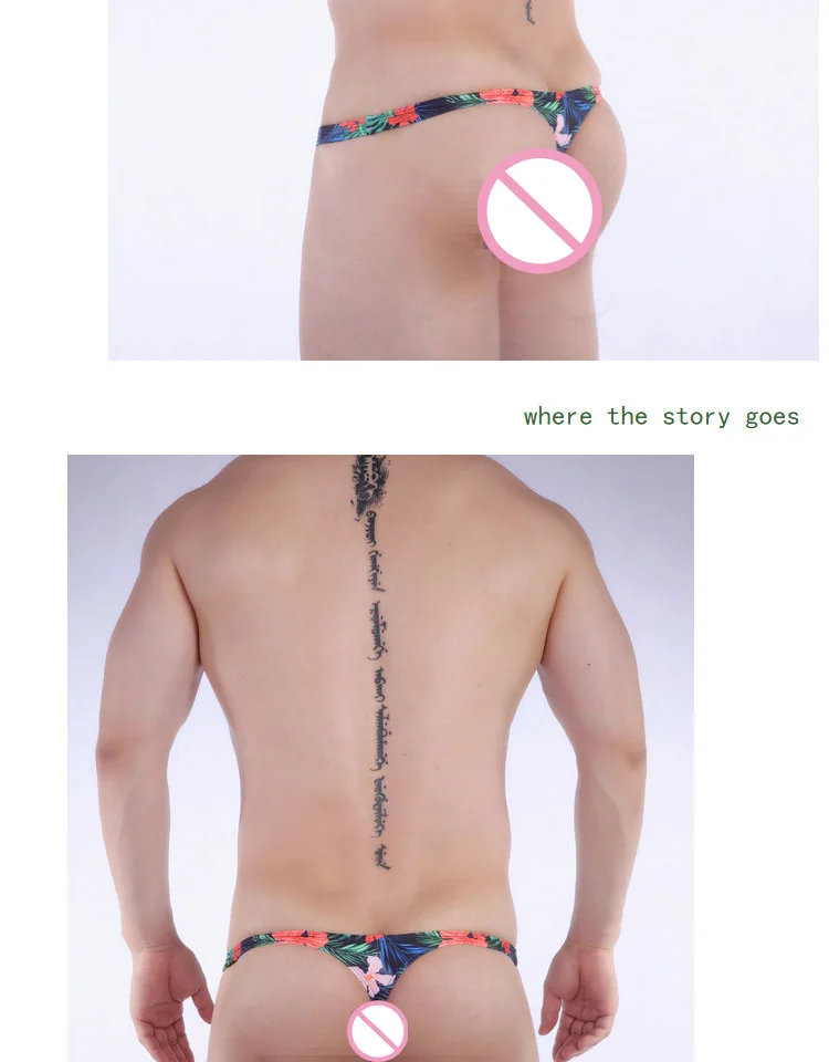 Трусы для геев с цветочным принтом, низкая посадка, сексуальная одежда для плавания, мужские бикини, черные мужские плавки, Tanga Pouch Sunga, пляжные шорты для плавания, стринги 115