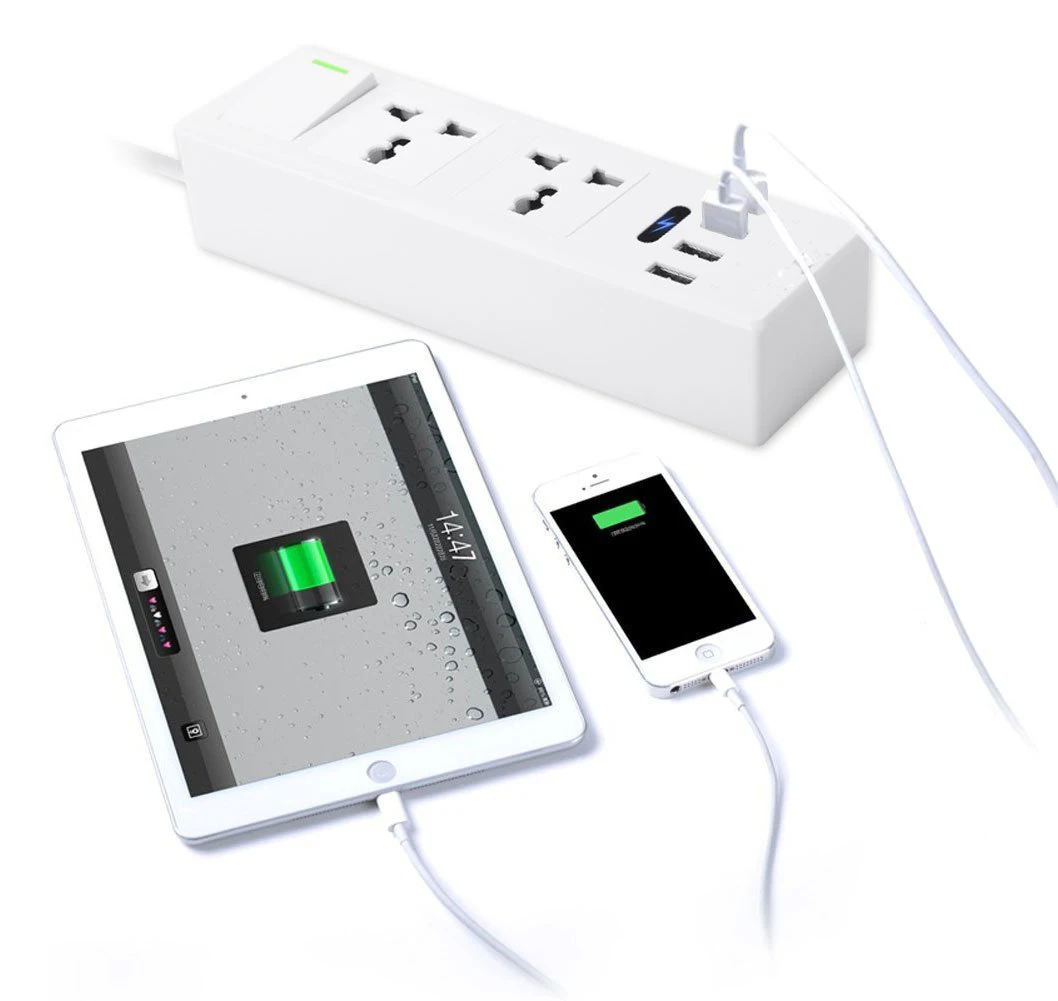 Будут оснащены 4 usb-портами со встроенным двухъядерным интеллектуальным детектором, который может автоматически обнаруживать различные устройства и организовывать лучший зарядный ток для устройства. Вам не нужно выбирать порты 1A или 2A; Все, что вам нужно сделать, это подключить устройство к ленте питания через зарядный кабель.