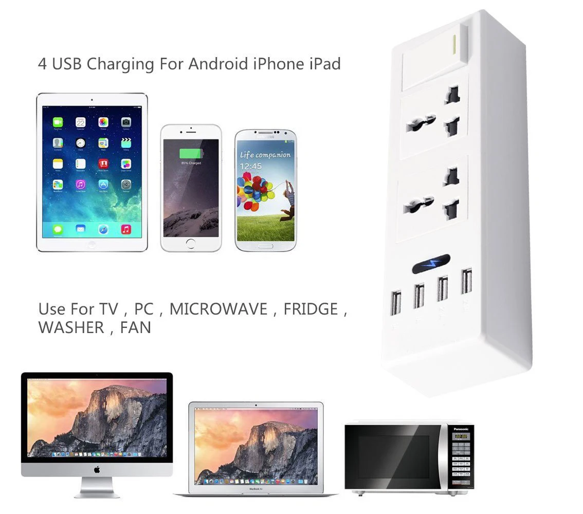 Этот 2-в-1 несколько резьбой раструбного соединения для USB зарядного устройства, Удлинительный Кабель 1,8 м, который имеет возможность подключение смартфонов, планшетов, настольные лампы, компьютеры и т. д., может уменьшить хаос и беспорядок, добавив слишком много зарядных устройств и устройств. Это большая зарядная станция, которая отвечает ежедневным потребностям зарядки различных устройств и питания 2 потребителей переменного тока.
