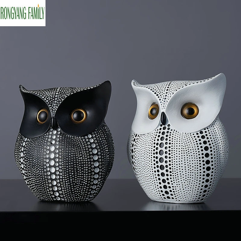 RONGYANG FAMILY 2019 NEW Hot Nordic Owl Statue Home Living Room Office Decoration Nighthawk Sculpture Modern Creative Animal Night Owl Miniatures Figurines