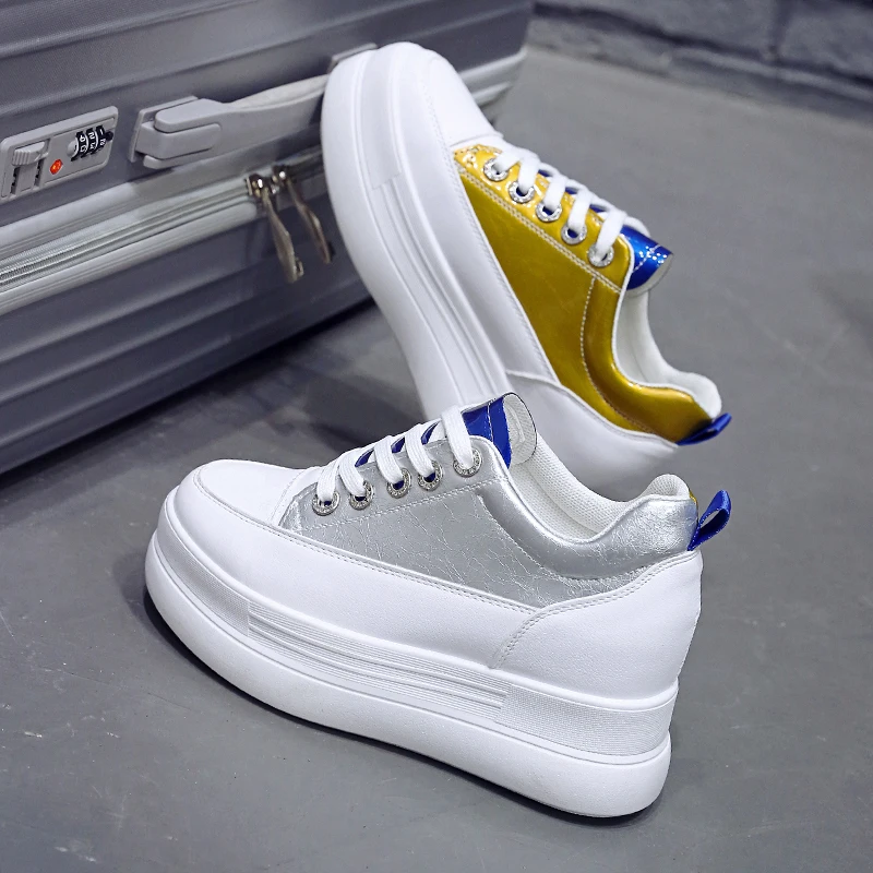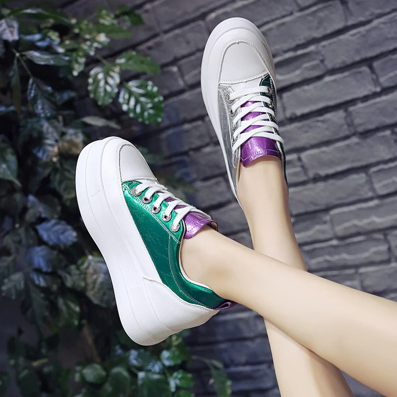 Модные женские кроссовки на платформе; Кожаная обувь на танкетке; Белая Повседневная обувь; Сезон осень; Женские кроссовки на толстой подошве; Deportivas Mujer