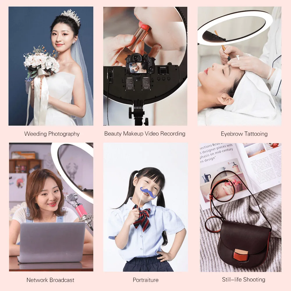 Большой светодиодный кольцевой светильник53 см большой внутренний диаметр для более широкого диапазона освещения, и может создать более очаровательные подсвечивающие огни на глаза модели, подходящие для сетевой трансляции, портрета, макияжа лица и т. д.