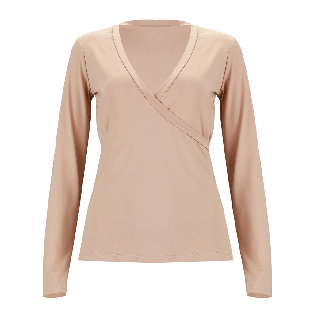 1. Особенности: однотонный, v-образный вырез, длинный рукав, футболка, топы, Повседневная Блузка, стильный и модный дизайн, Осенние повседневные топы