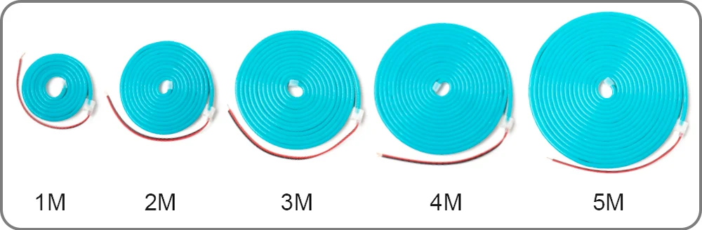 Фактический размер ленты на светильник длиной от 1 метра до 5 метров