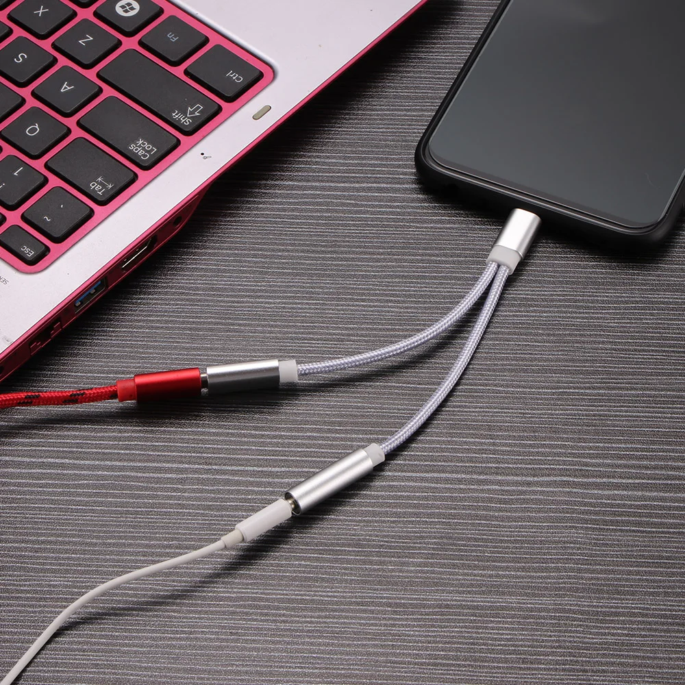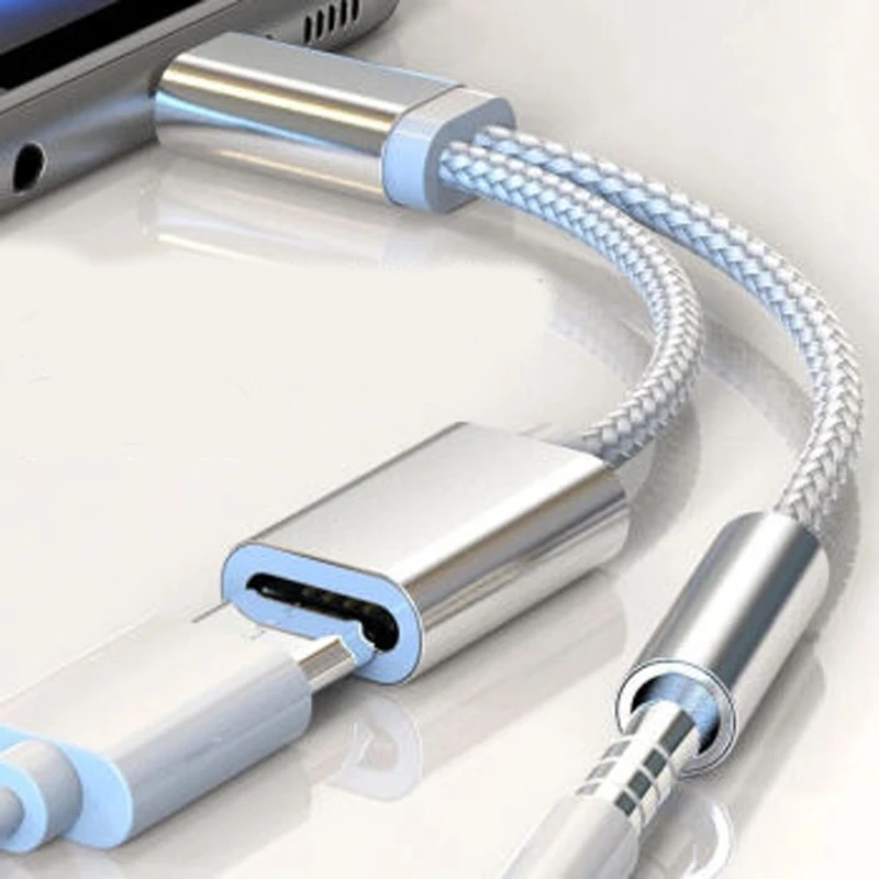 Посылка включает в себя:1 шт. 2 в 1 Тип C до 3,5 мм E кабель для зарядки