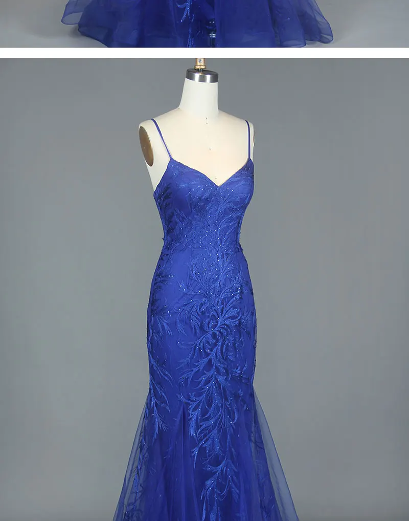 Новое синее вечернее платье 2020 Королевское синее тонкое длинное женское вечерние Бальные вечерние платья на бретельках элегантное вечернее платье