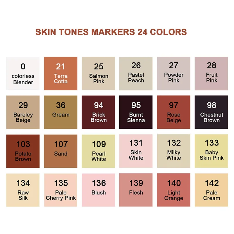 24 оттенка кожи в комплекте,Бесцветный блендер, Terra Cotta, лососевый розовый, пастельный персик, пудровый розовый, фруктовый розовый, Bareley Belge, Gream, кирпичный коричневый, сгоревший Сиенна, Розовый Бежевый, каштановый, картофельный коричневый, песочный, жемчужно-белый, белый, молочно-белый, розовая детская кожа, натуральный шелк, бледно-Вишневый Розовый, румяна, телесный, оранжевый, бледно-кремовый светильник.