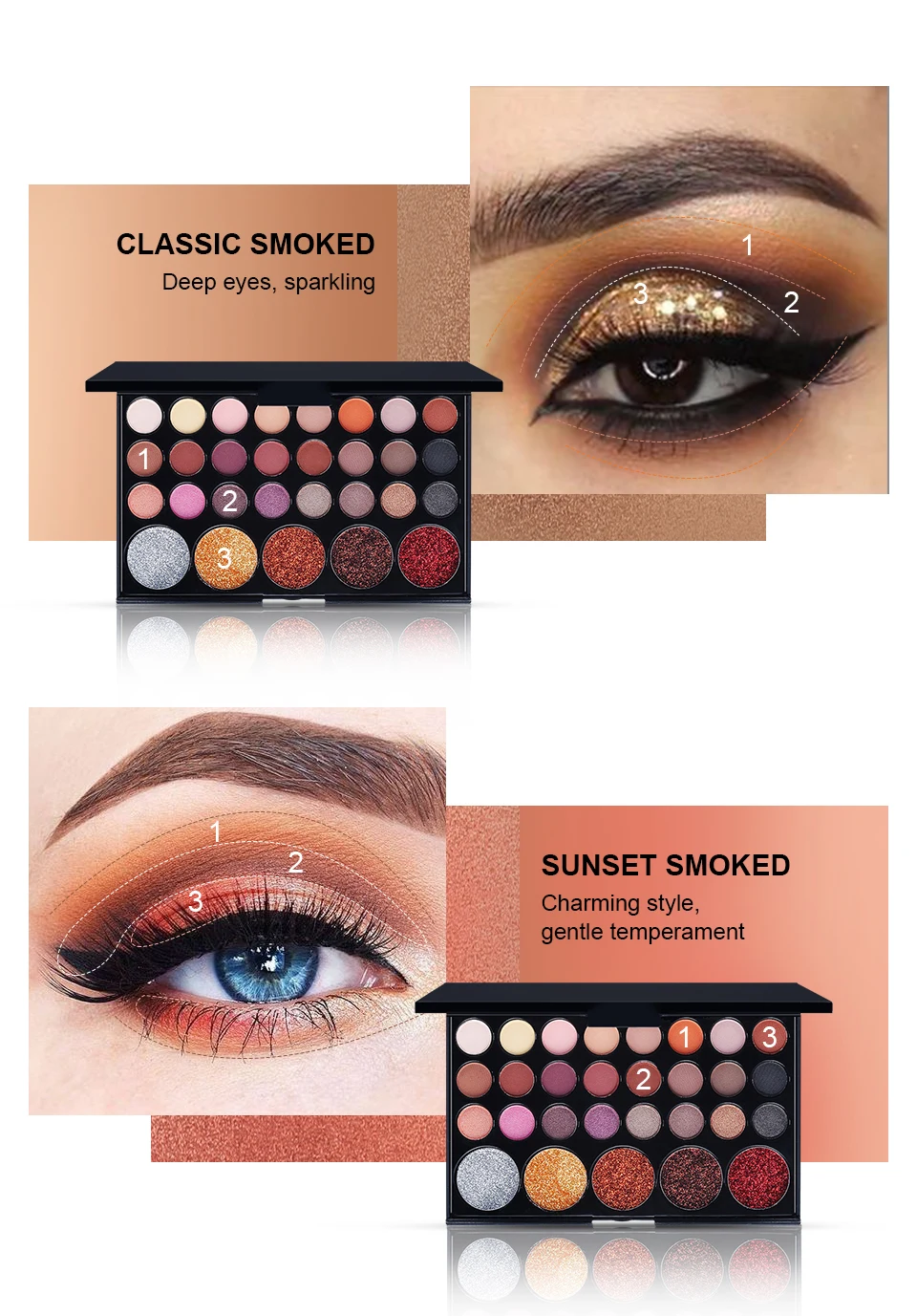 Благодаря компактному дизайну его легко хранить и переносить во время путешествий. Очень тонкий, мягкий, гладкий и деликатный на ощупь. Высококачественные ингредиенты могут производить яркие цвета и длительный МАКИЯЖ, не раздражая кожу. Портативный и простой в использовании. Богатые и ведущие цвета. Цвет варьируется от белого/кремового цвета до темных цветов, что идеально подходит для дымчатых глаз. Эта палитра имеет все виды цветов, которые вам нужны, независимо от дня, ночи, отдыха, вечерние, свадебные, вы можете воспроизвести изысканный или авангардный вид днем и ночью! Подходит для профессионального салона или семьи. Изысканный порошок, мягкие цвета и стильный макияж. Не содержит красителей, не образует раздражающих теней для век. Цвет насыщенный и яркий, палитра содержит матовые и мерцающие тени для век, которые легко сочетаются с вашим внешним видом!