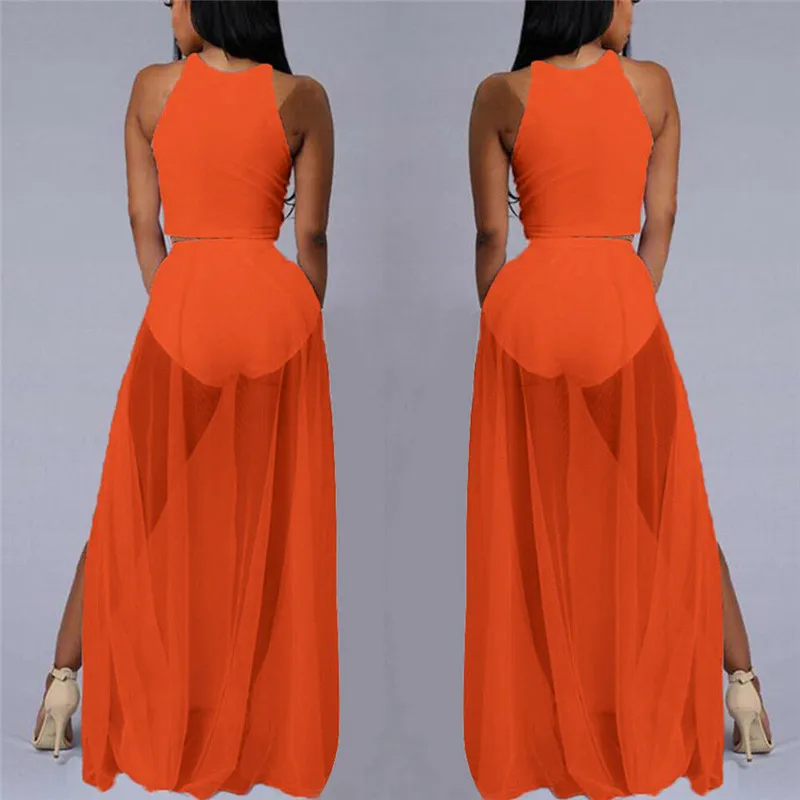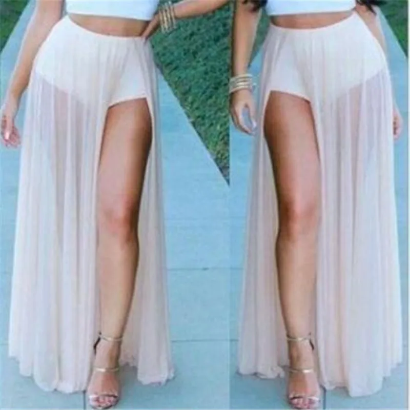 Женская модная летняя юбка макси с боковым открытием, модные, прозрачные сетчатая Нижняя юбка, женская сексуальная прозрачная однотонная длинная юбка, лидер продаж!