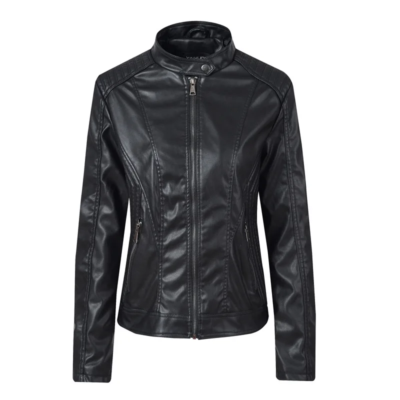 Новая модная женская весенне-осенняя приталенная куртка из искусственной кожи на молнии с длинным рукавом, Женская куртка-бомбер, крутая мотоциклетная верхняя одежда, куртка, пальто