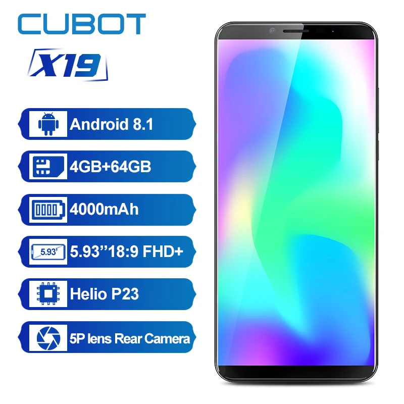 Посылка: 1x Cubot X19 1x USB кабель (Тип-C) 1x защитный чехол 1 x Зарядное устройство5V2A 1x Руководство пользователя 1x Pin-код |